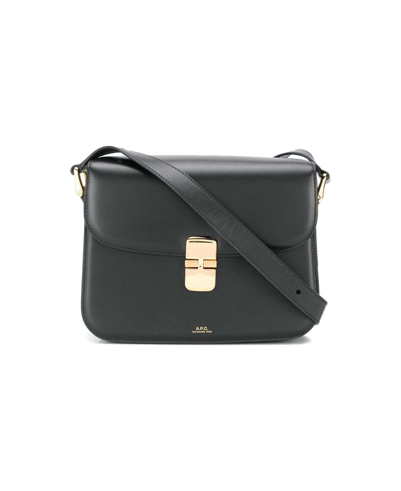 Crossbody bag Closure with flap and buckle Front logo print Adjustable shoulder strap Gold-colored hardware One main internal compartment Black Leather Dimensions: 25x20x6 cm Shoulder strap length: 60 cm