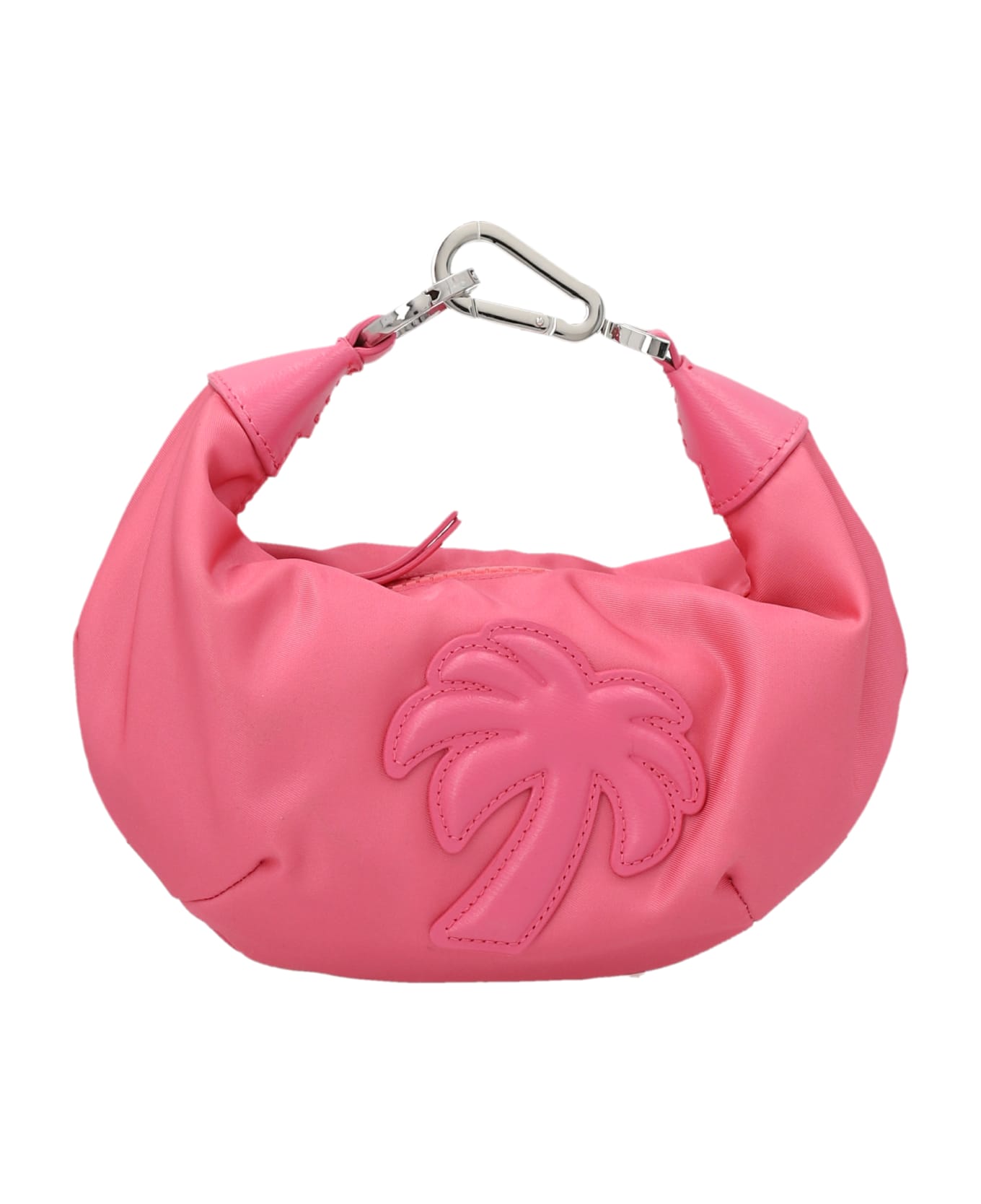 'Big Palm' nylon handbag with leather details, zip closure, snap hook handle detail. tail. Composition: