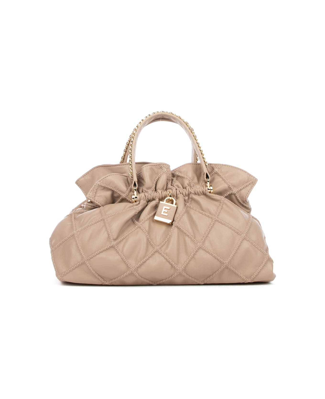 Double Handle Bag Sand Small Embossed In Eco Leather