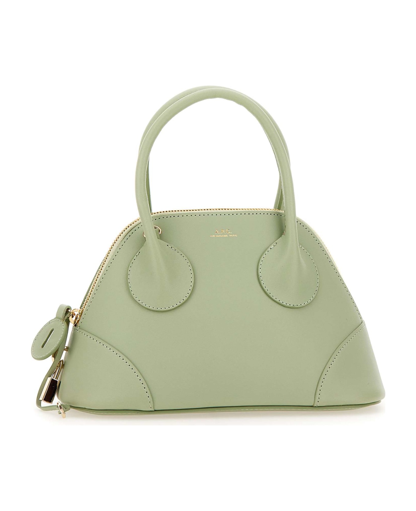 Leather handbag "Emma Small" A. P. C. , pastel green, top fastening with zip, gold finishes, logo embossed on front, main compartment, internal slip pocket, internal logoed patch, double top handle, cotton lining. Removable and adjustable shoulder strap 90cm. Measurements: length 24cm, height 15cm, depth 12cm.