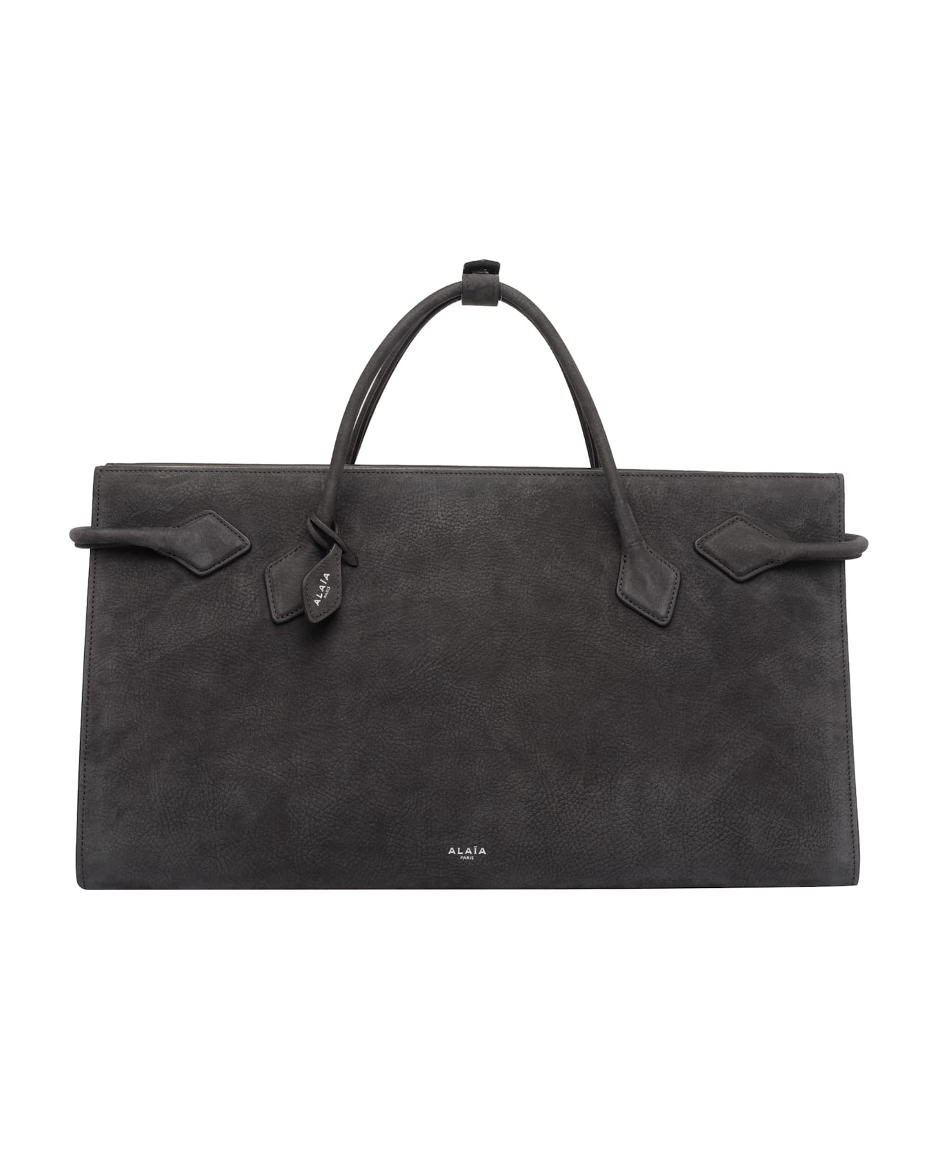 Alaia dark grey Le Teckel tote bag, inner open pocket, 2 handles, frontal mini logo
