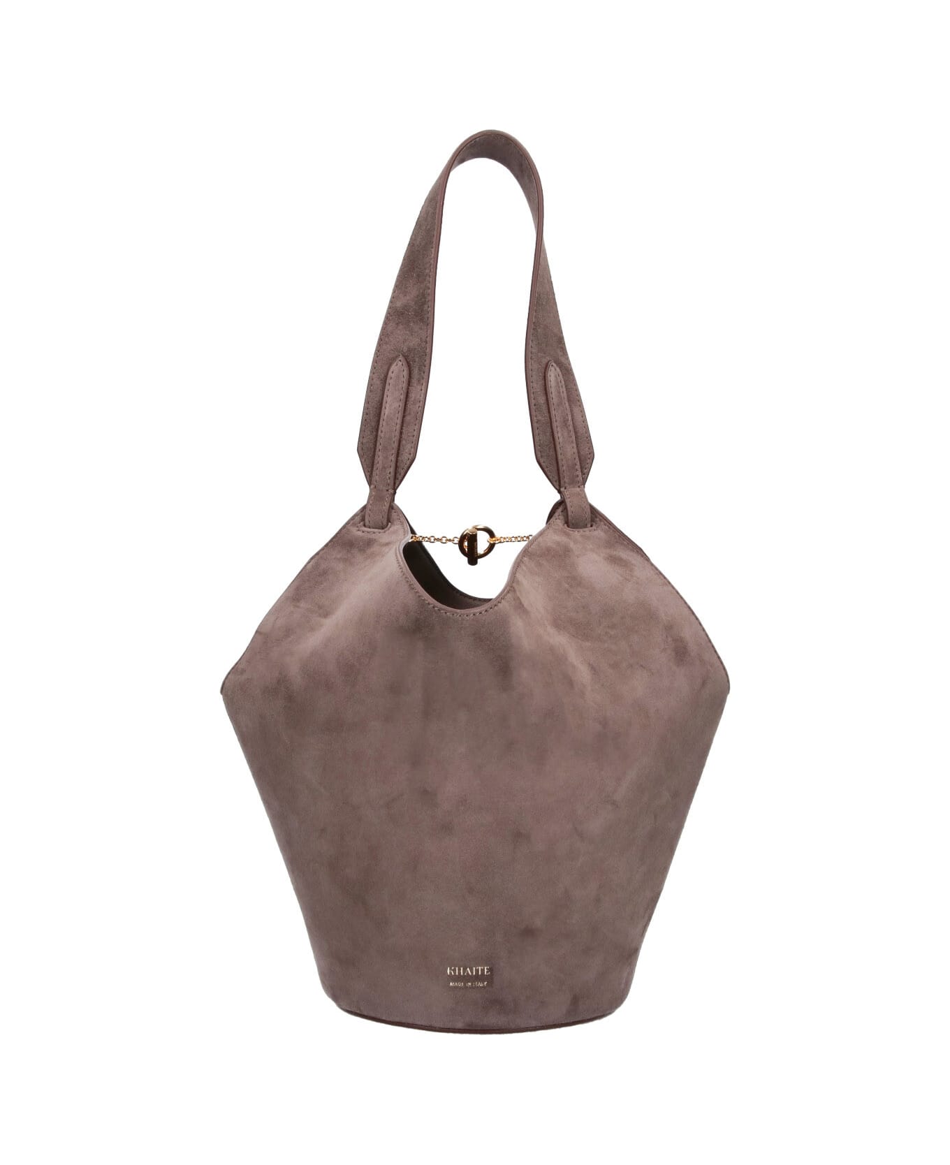 - Mini tote bag "Lotus" Khaite in taupe suede