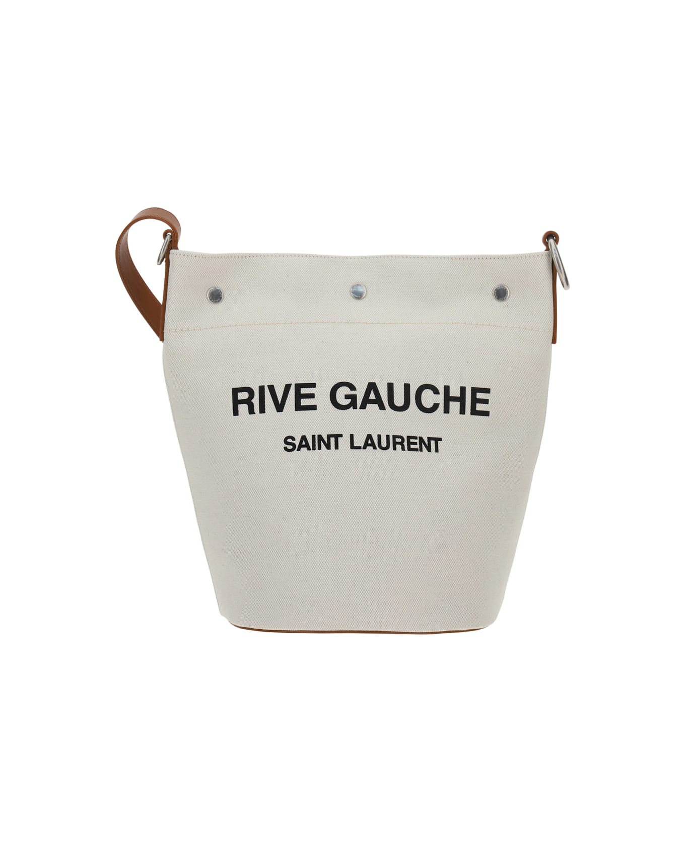 Cotton And Linen Seau Rive Gauche Bag By Saint Laurent, Adjustable Leather Shoulder Strap With Removable Zippered Leather Clutch, Snap Button Closure, Single Interior Compartment, Interior Flat Pocket. composition: 50% Cotton, 50% Linen