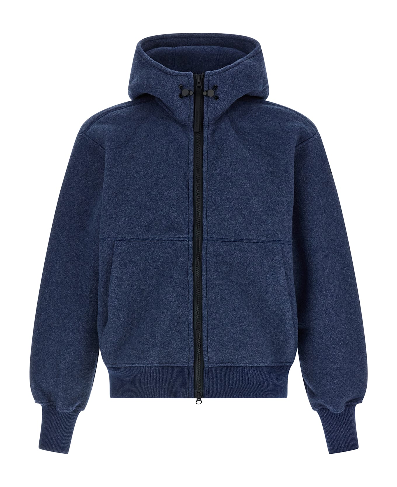 New generation Kind Fleece'Chilliwack' fleece bomber jacket with CORDURA® reinforced areas, adjustable snorkel hood, high neck, front zip closure, pockets, long cuffed sleeves and logo patch appliqué, and headband. SUSTAINABLE: In a thick petroleum-based textile category, Canada Goose has developed 'Kind Fleece': a new generation of fleece to help keep the planet cold and people warm. This soft and breathable fabric is made from 62% recycled wool, 18% wood-based TENCEL Lyocell, 13% partially organic Sorona® polymer and 7% polyamide.