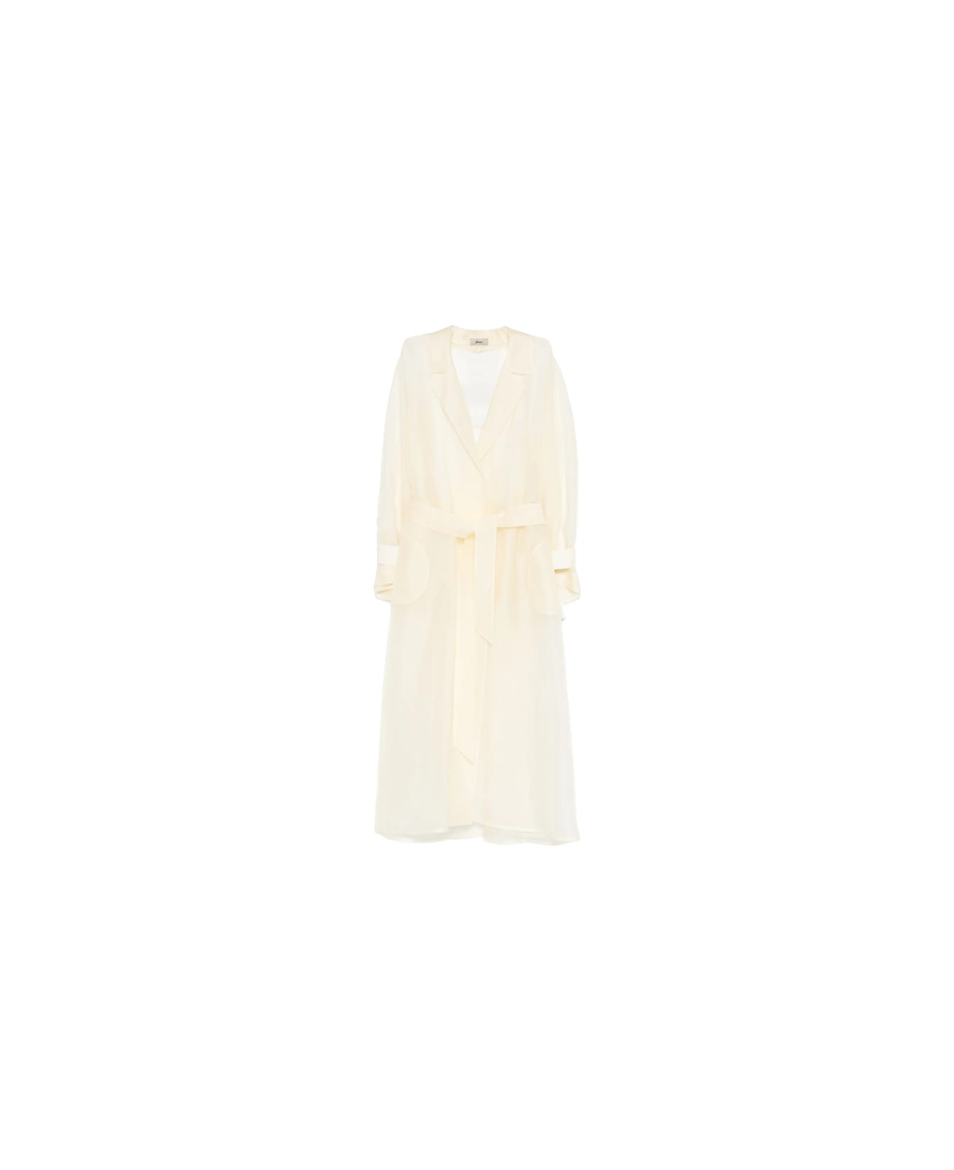 beige belt patch pockets long sleeves sheer classic lapels