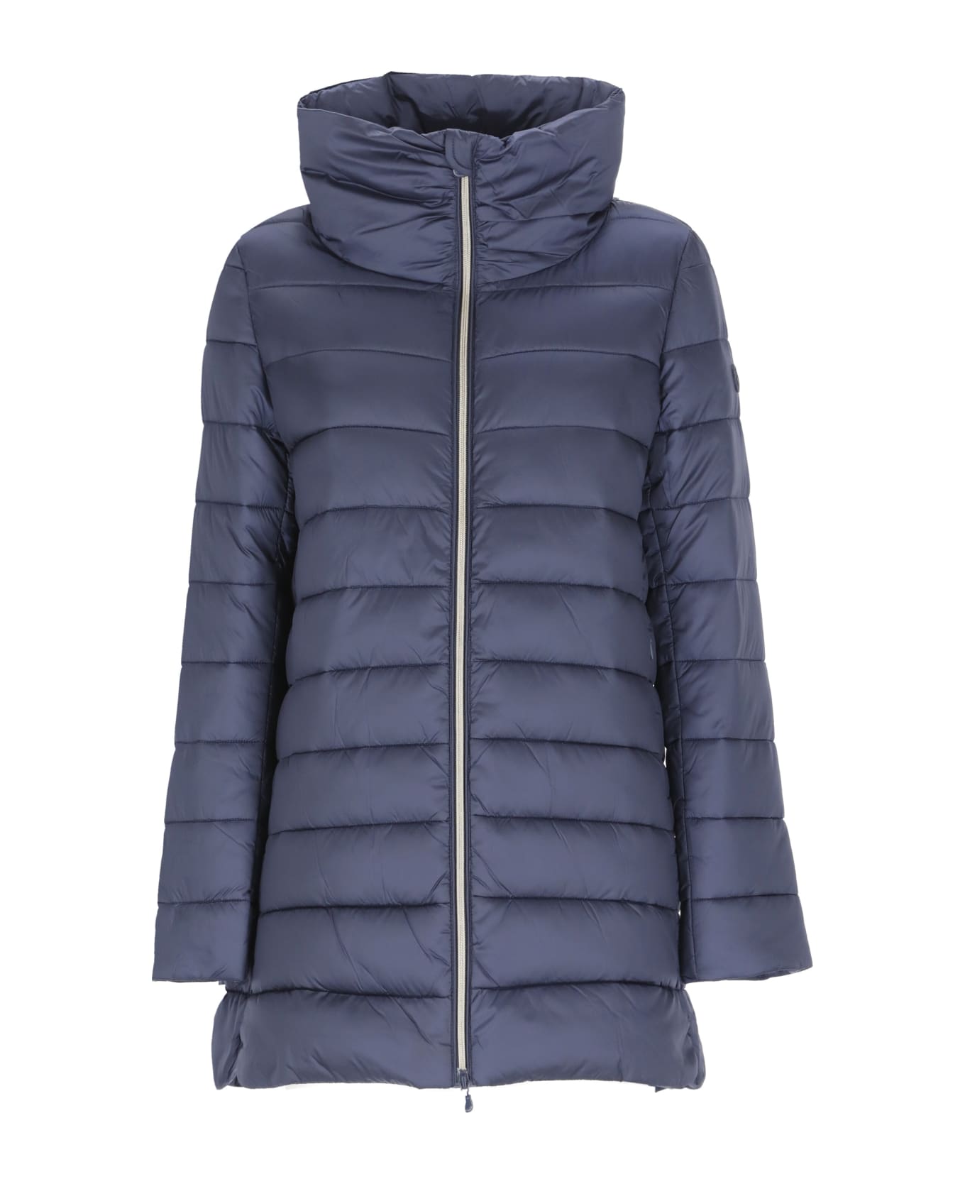Lydia Down Jacket from Save the Duck: - Blue Save the Duck quilted down jacker for woman - High neck - Long sleeves - Front zip fastening - Rubbered Save the Duck patch at left sleeve - Two side slit pockets with zip fastening - Two internal slit pockets Composition: 100% Nylon Filling:, 100% Polyester