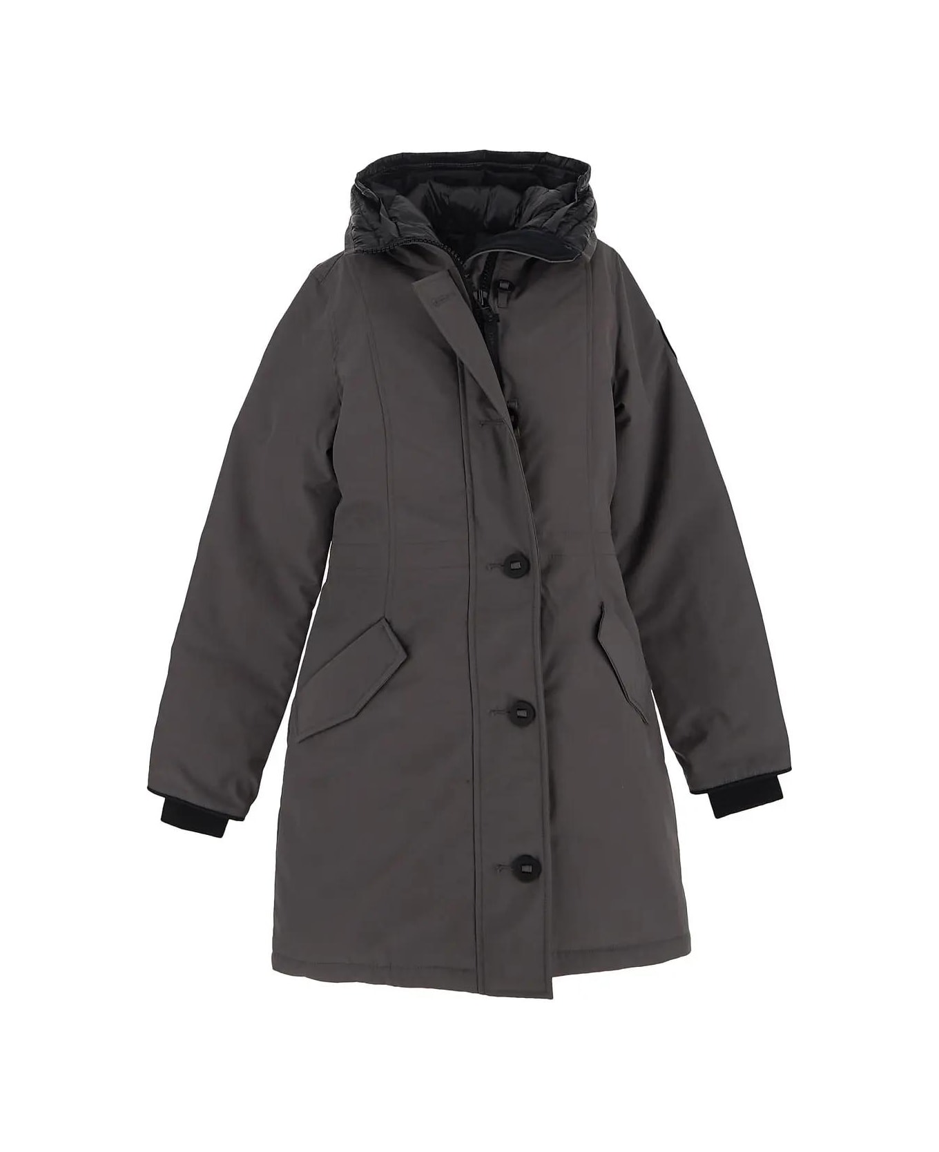 Canada Goose parka jacket in coastal grey polyester blend featured by a down-fill hood with removable zipped trim, pulled neck, long sleeves, inner elasticated mesh waistband, recessed black cuffs, flap pockets, concealed zip and button closure, black logo patch on the sleeve, expandable bottom thanks to a rear zip fastening, hanging lining with backpack straps, inner waistband drawstring and water repellent. It protects you up to -20C.