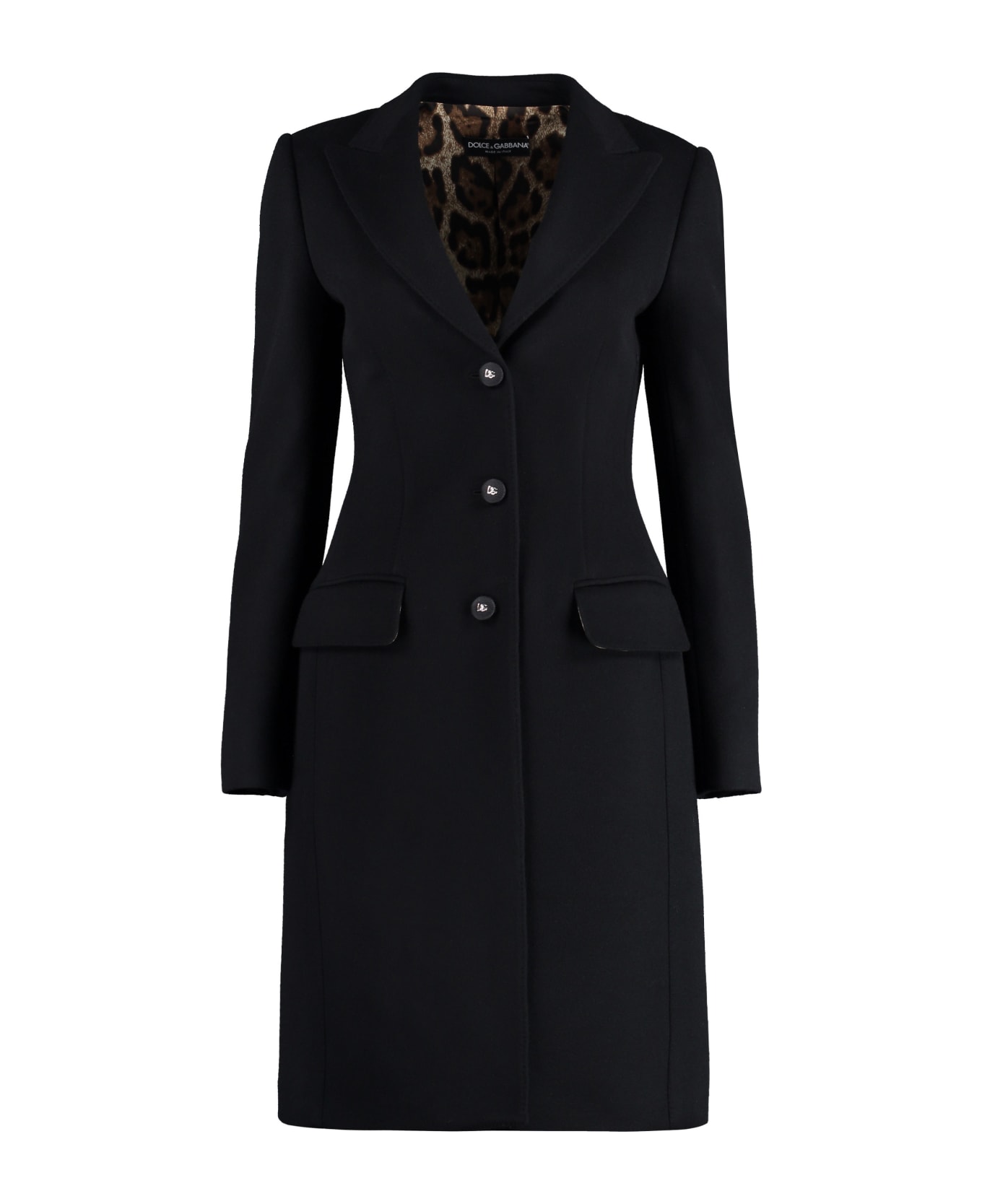 Peak lapel collar Structured shoulders Tight waist Metal logo detail grosgrain buttons Hem with back slit Leopard print lining 90% Virgin wool, 10% Cashmere