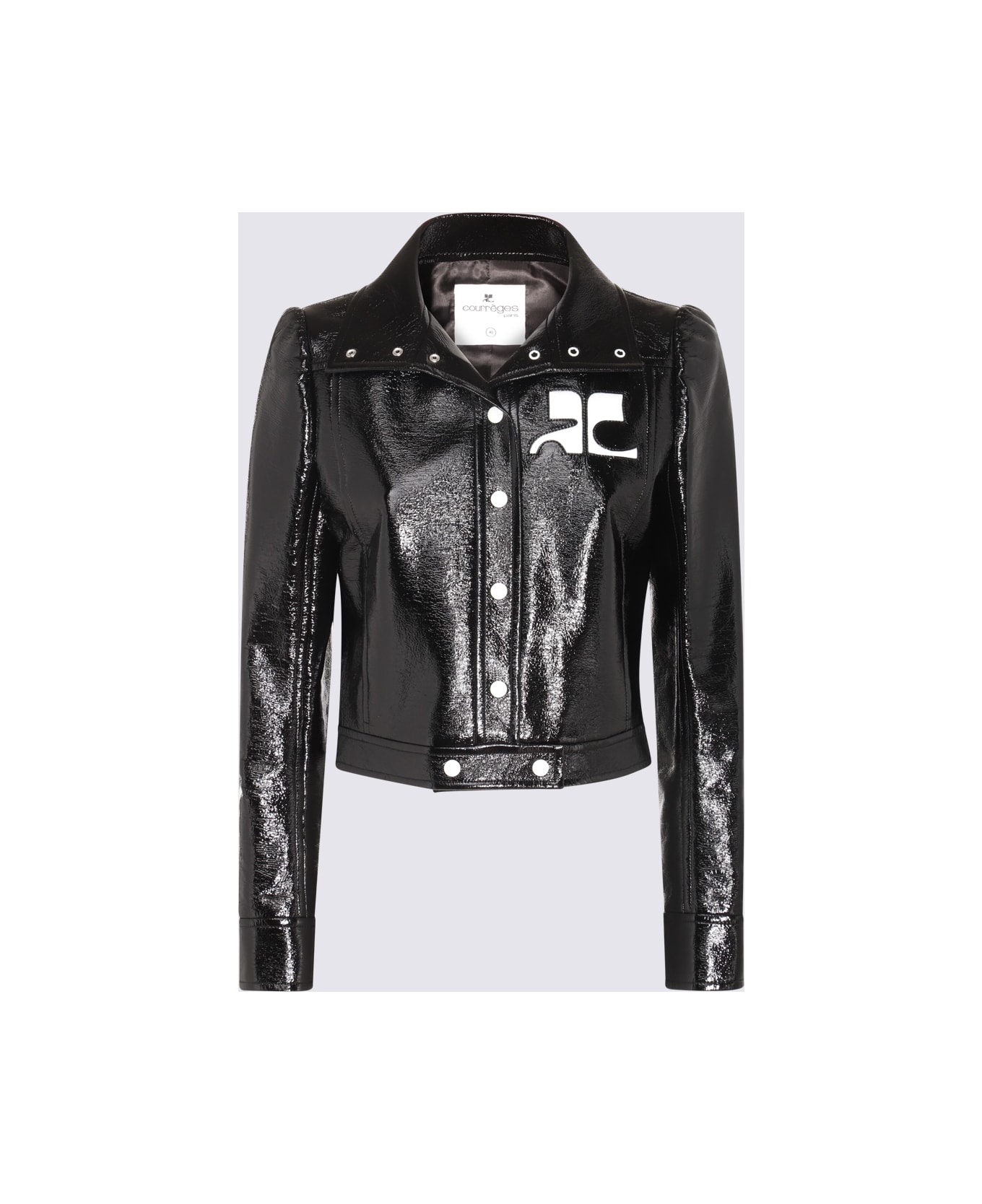 Black casual jacket from Courreges featuring long sleeves, buttons fastening, silver tone hardware, logo and regular vestibility.