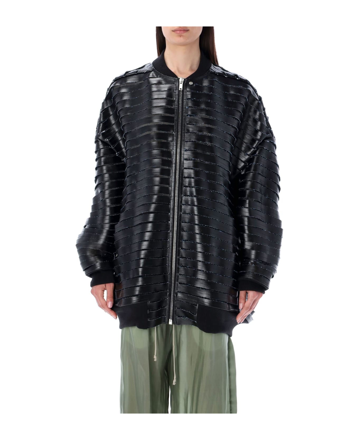 Jumbo Peter Flight Jacket By Rick Owens. Featuring: Ribbed Collar Zip Fastening Long Sleeves Dropped Shoulders Side Seam Pockets Cut-out Details Allover Rib Trims Jumbo Oversized Fit The Model Is 1,72 M Tall And She's Wearing Size 40