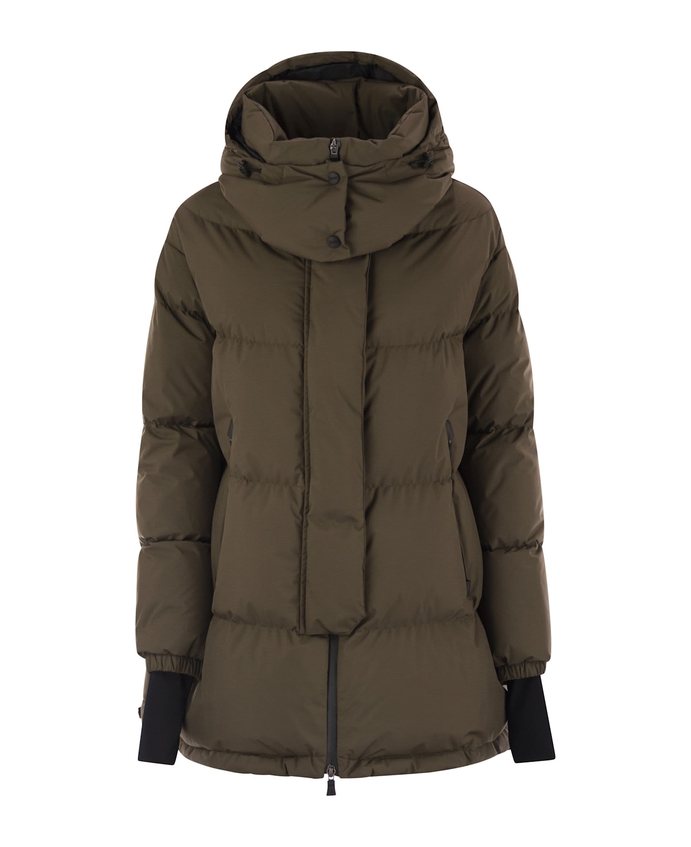 Down jacket in water-repellent fabric for an opaque effect and down filling. In addition to the matt and soft texture of the fabric, which gives it a sporty touch, the garment is also functional, thanks to the adjustable hood with elastic drawstring and elastic inner cuffs to retain warmth. It is therefore suitable for the city and ideal for tackling the winter slopes. - Regular fit - Adjustable hood with elastic drawstring - High collar - Elasticated inner cuffs with thumb holes - Waterproof two-way zip fastener with polyurethane coating - Waterproof zipped welt pockets with polyurethane coating - Performance: Water-repellent, Windproof, Lightweight DESIGNER ID: PI002047D12840 7400