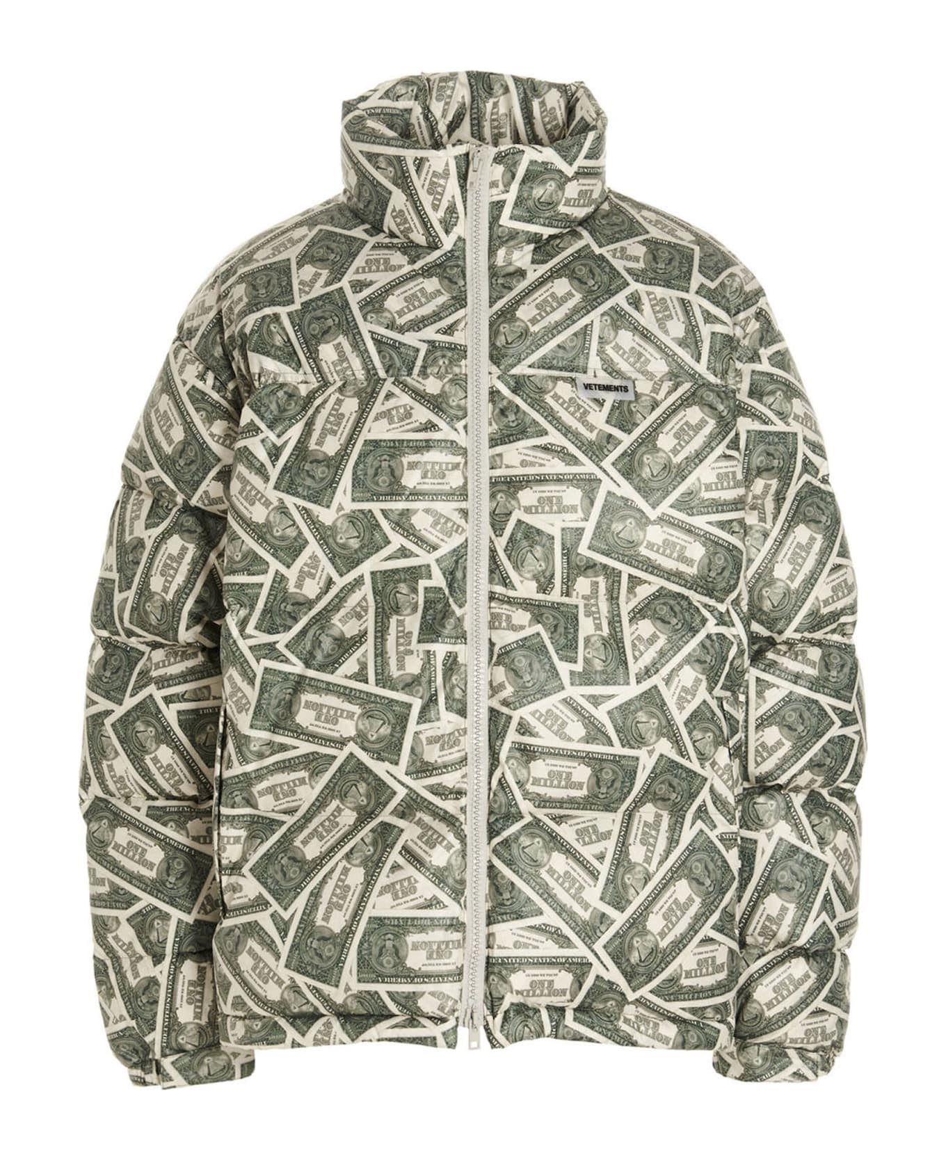 Million Dollar' down jacket in tech fabric with n all-over print, down padding, zip closure, high collar, long cuffed sleeves, pockets and adjustable drawstring on the bottom hem. Composition: 100% polyester