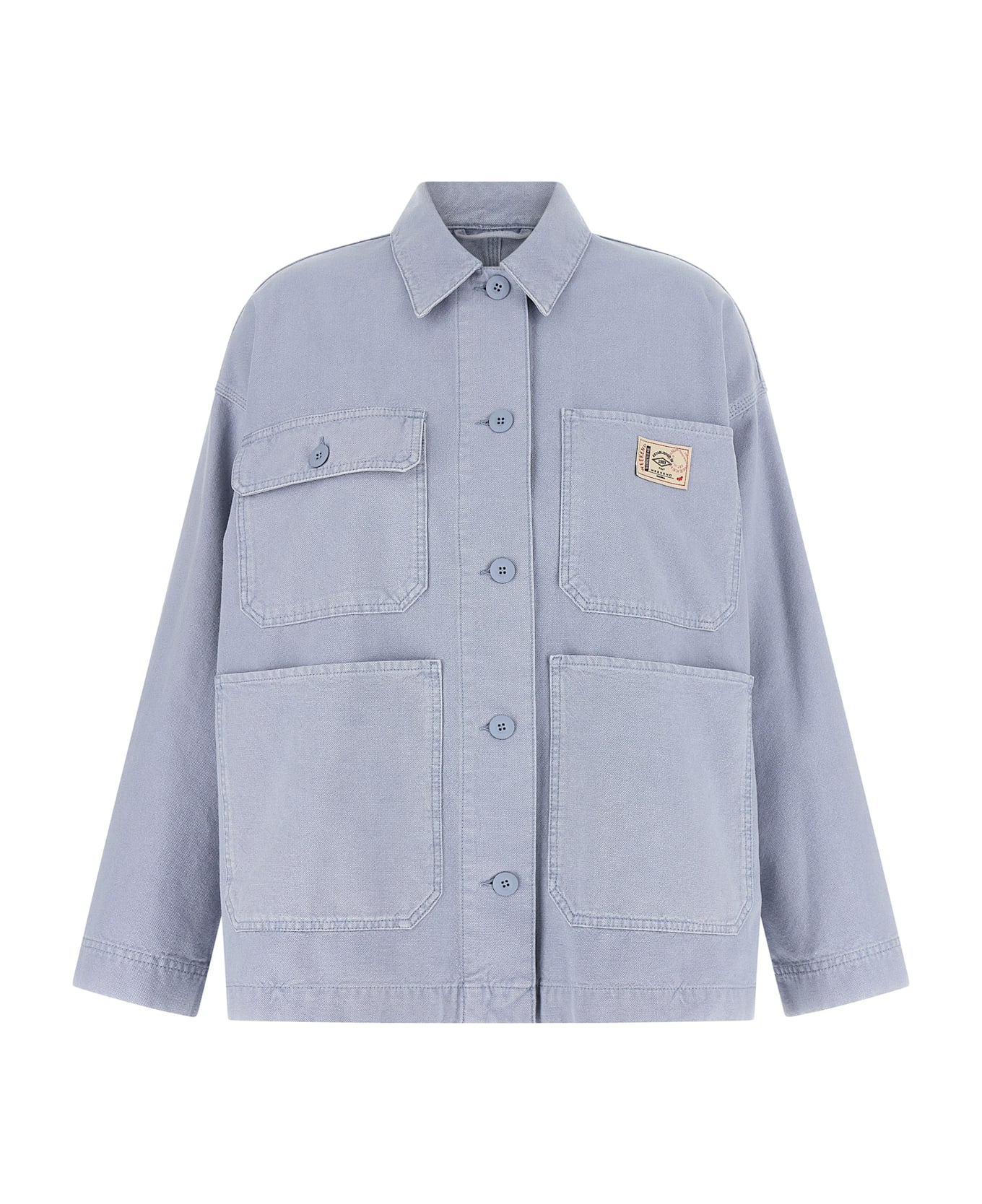 'WkdAlbum' jacket in pure cotton canvas garment-dyed, workwear model, logo patch and front button closure, shirt collar, long sleeves with dropped shoulders, unlined. Composition: 100% cotton