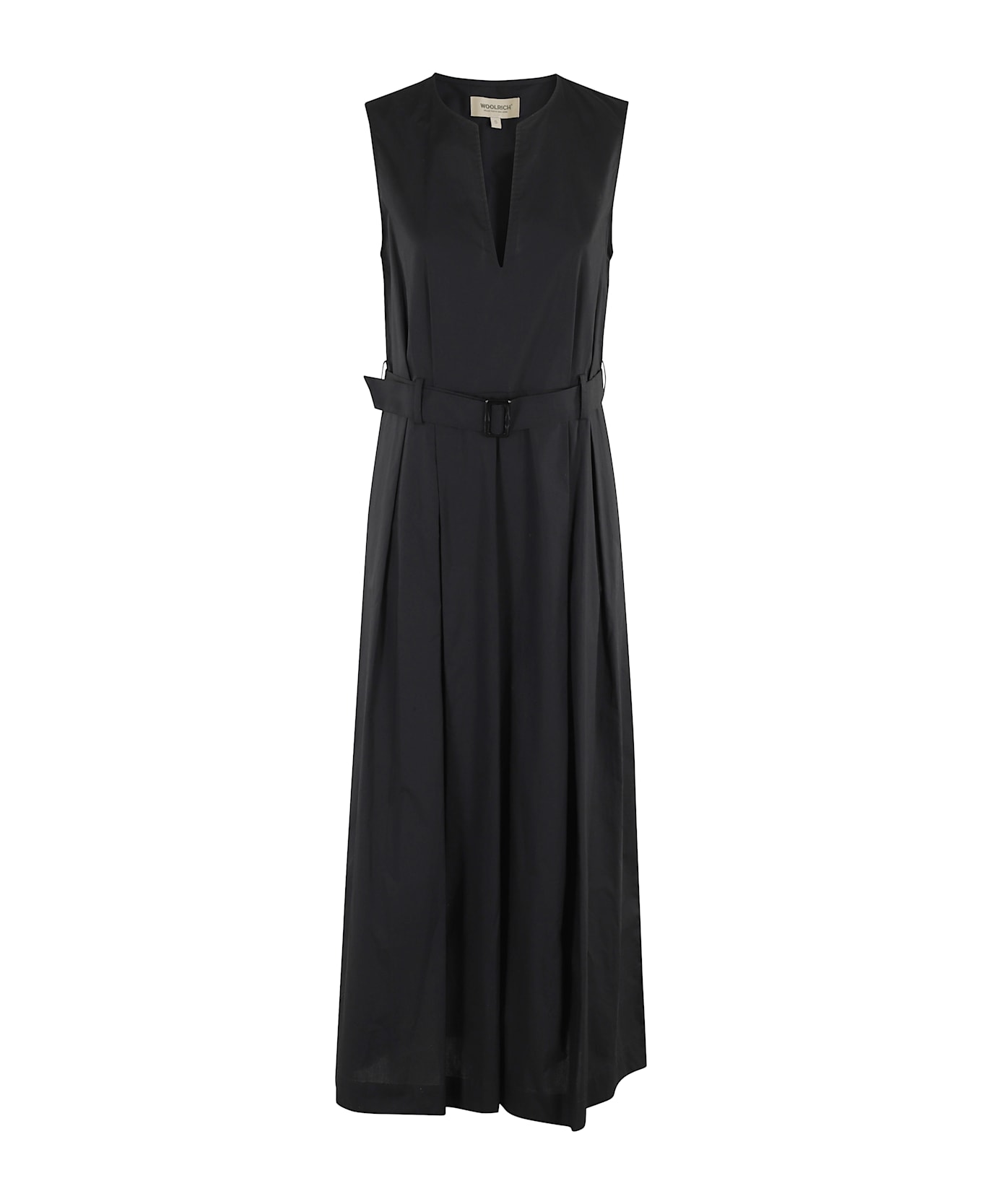 Midi dress -Woolrich -Black color -Sleeved -V-neck -Waist belt