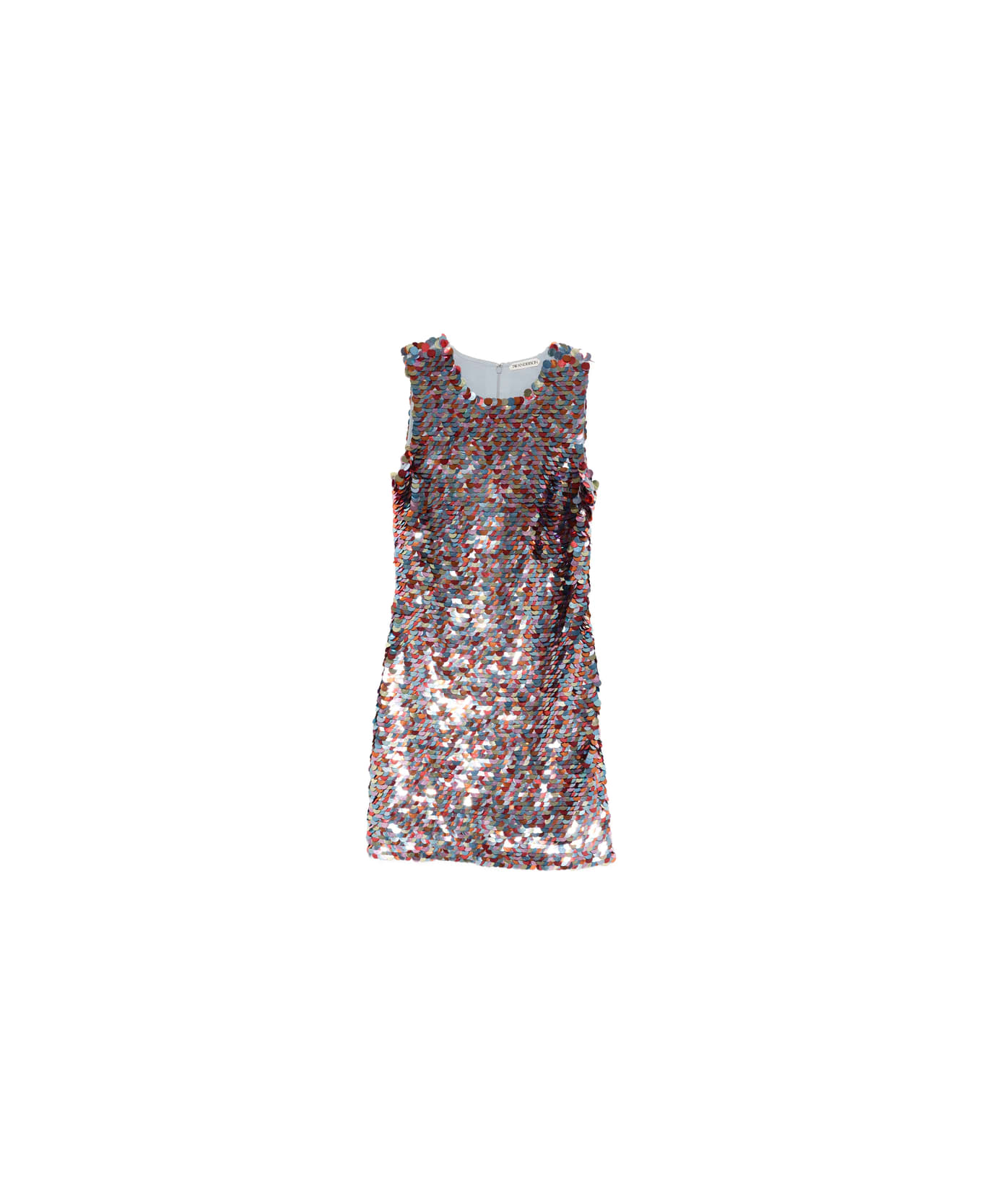 blue and multicolour sequin embellishment round neck zip fastening shift silhouette