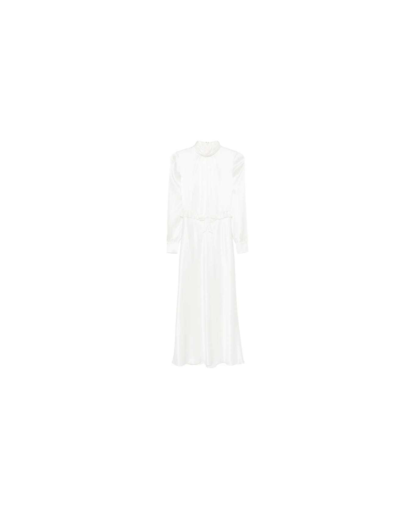white silk ruffled trim self-tie fastening long sleeves buttoned cuffs