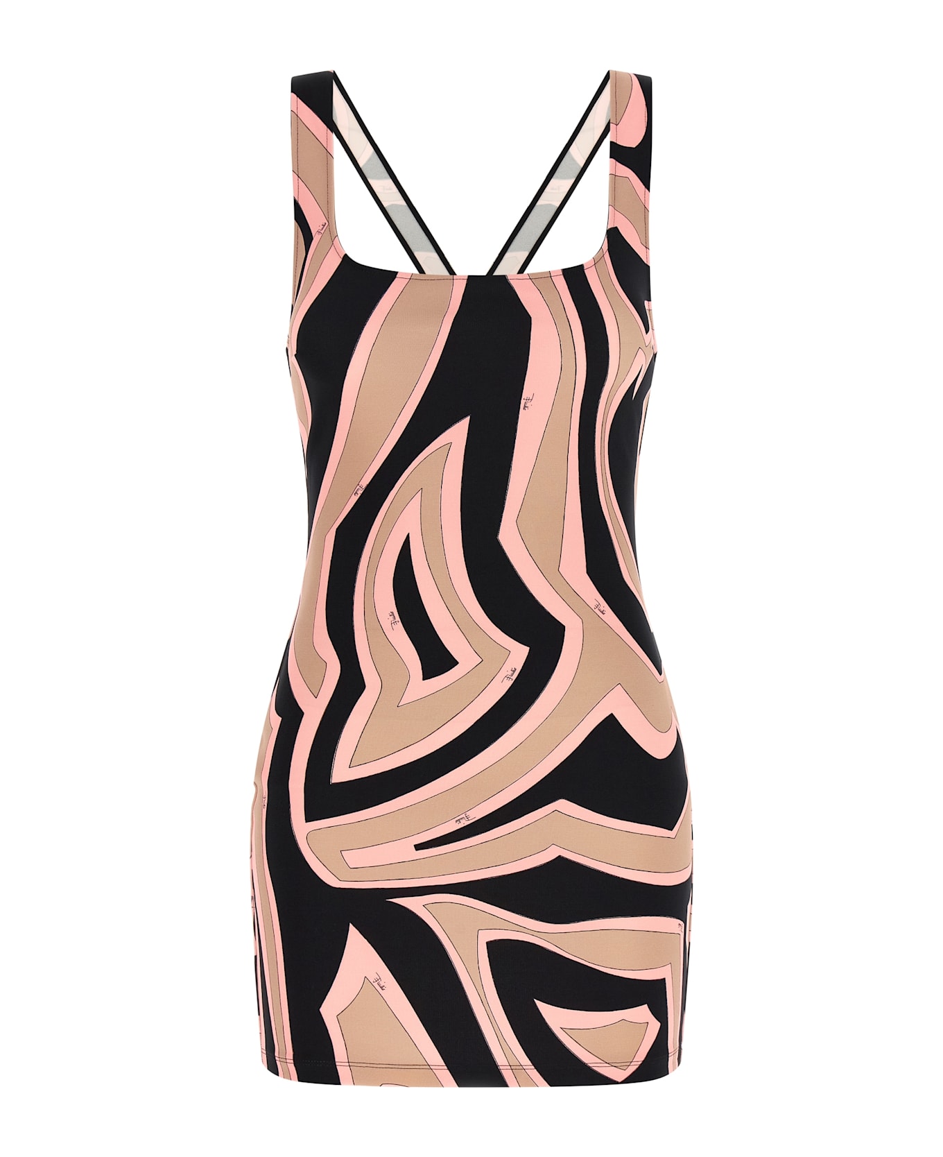 All-over stretch viscose mini dress with all-over 'Labirinto' print, straight cut, square neckline, and back zipper closure. This product, like many other Pucci items, is made with an all-over print that falls differently on each garment The product shipped may differ from the one in the picture.
