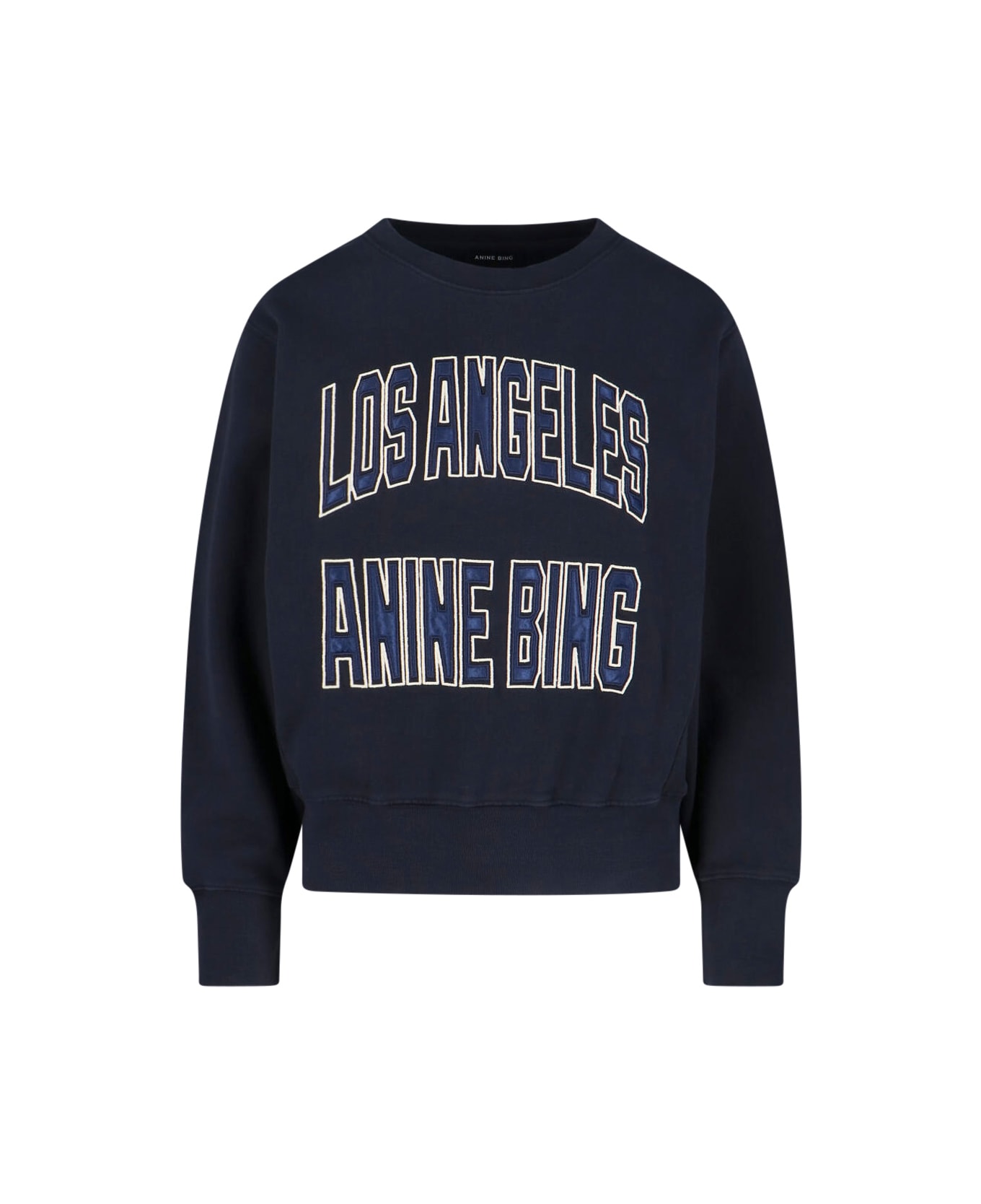 Anine Bing 'harry' black cotton logo sweatshirt with crew neck, long sleeves, contrast lettering logo on the front, ribbed trim, straight hem.