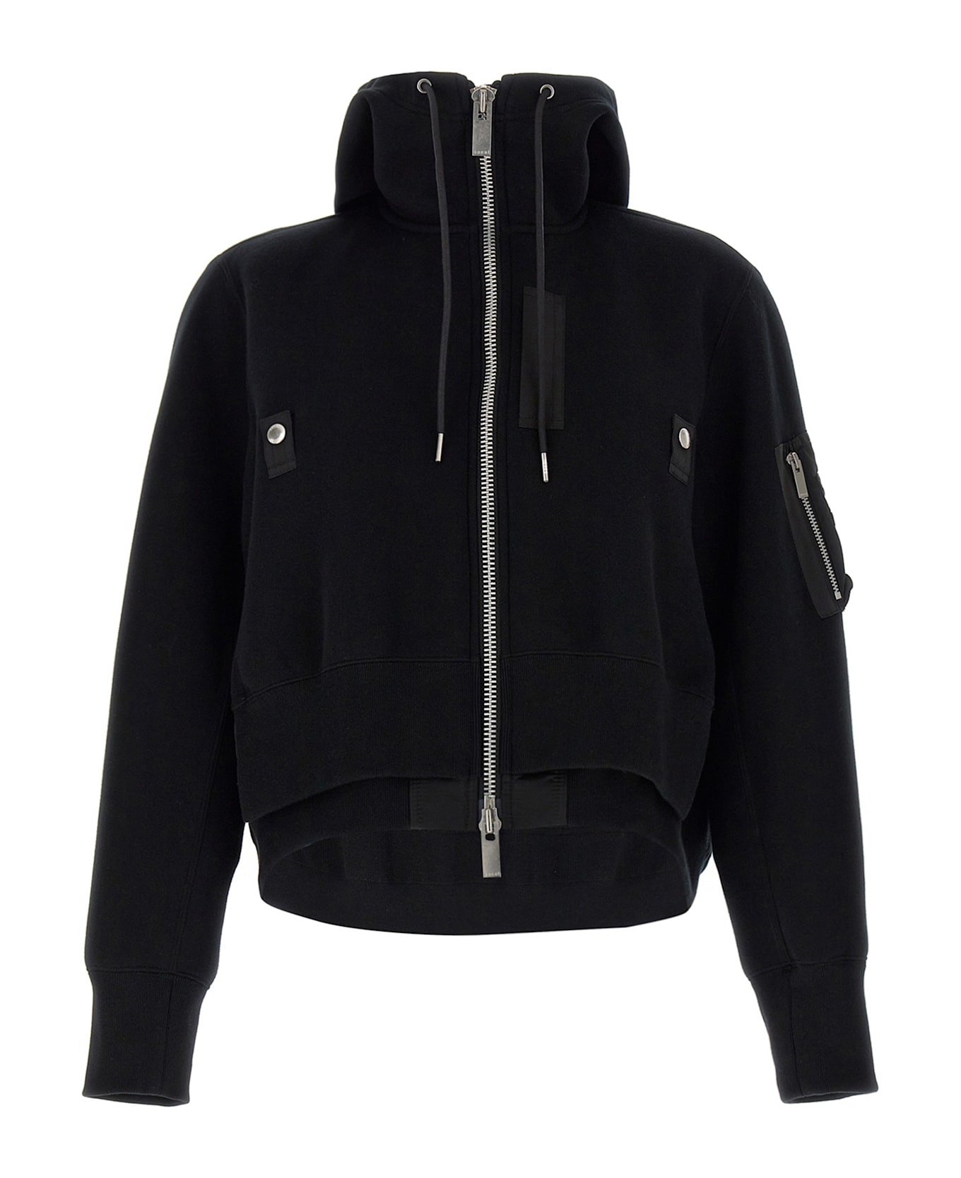 'Sponge' cotton blend hoodie with nylon inserts, zip closure, pockets, long cuffed sleeves.