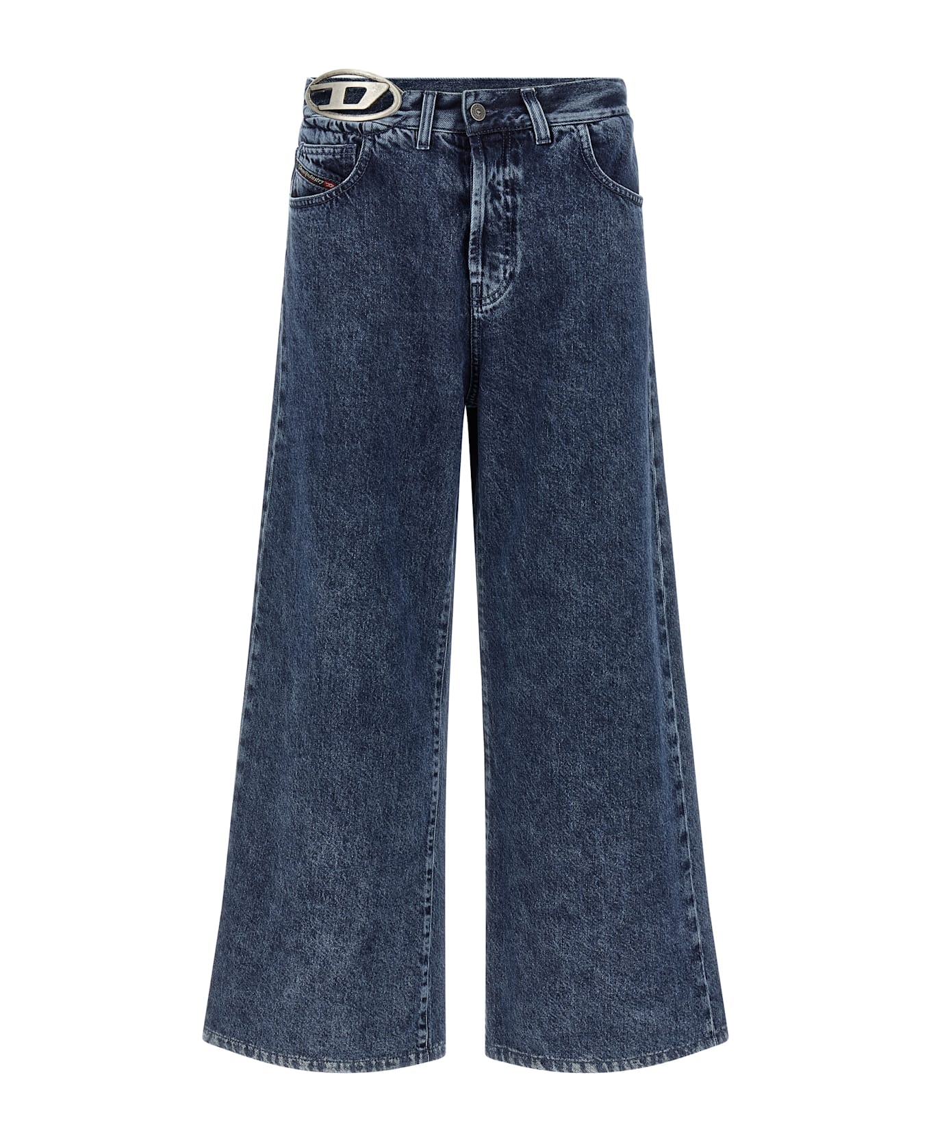 '1996 D-Sire-S4' cotton and lyocell blend denim jeans, low waist, low crotch and extra-long wide leg, cut-out metal Oval D logo detail at the waist, front button closure, five pockets, back logo tag. SUSTAINABLE: This product is made of regenerated cotton. Composition: 82% cotton, 18% lyocell