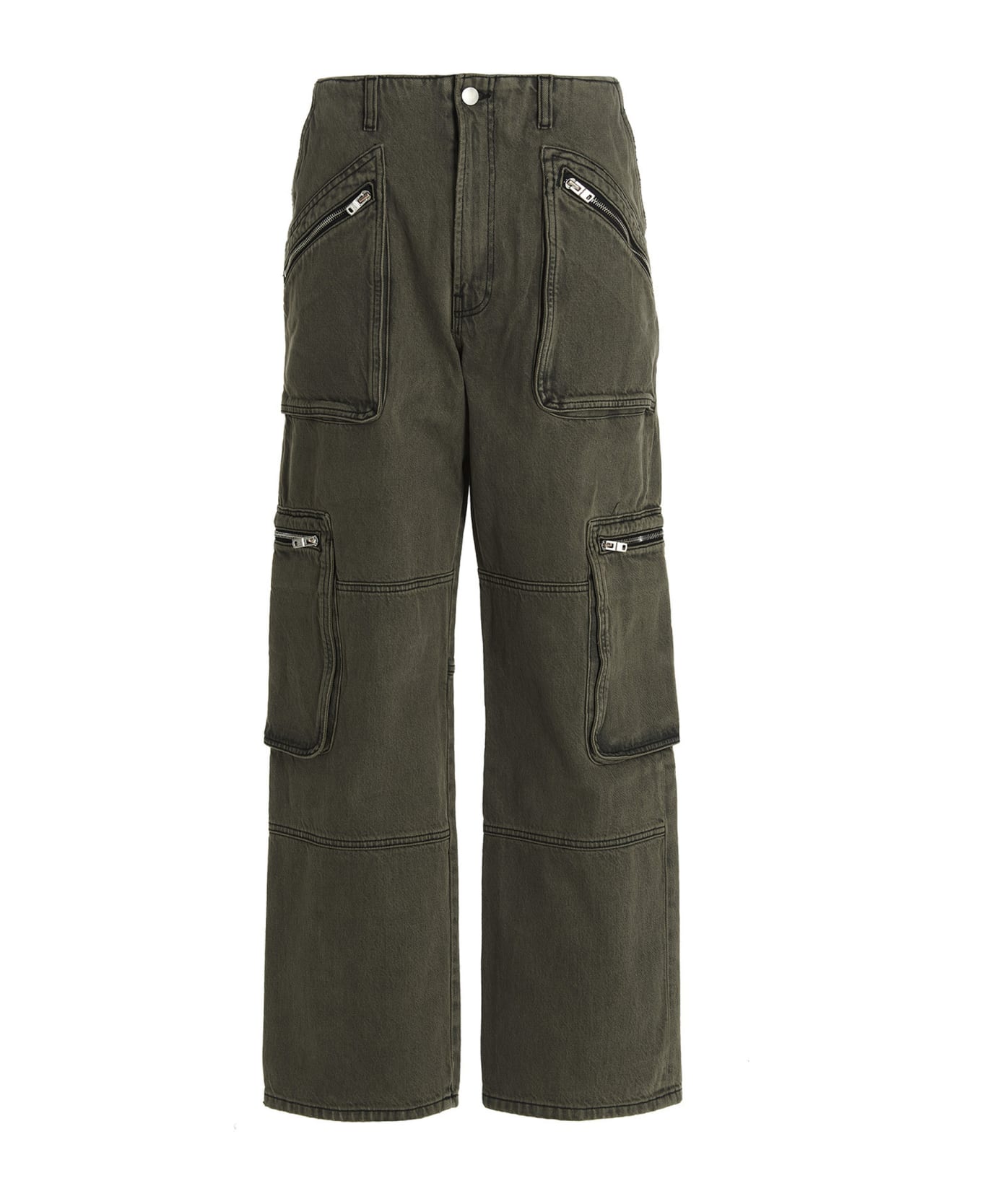 'Cargo Loose' cotton denim jeans with zip and button closure, multi pockets.