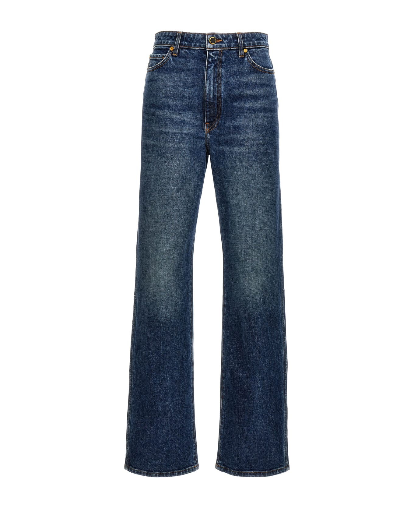 'Danielle' stretch cotton denim jeans with zip and button closure, five pockets, used-effect details, straight leg. Composition: 98% cotton 2% polyurethane