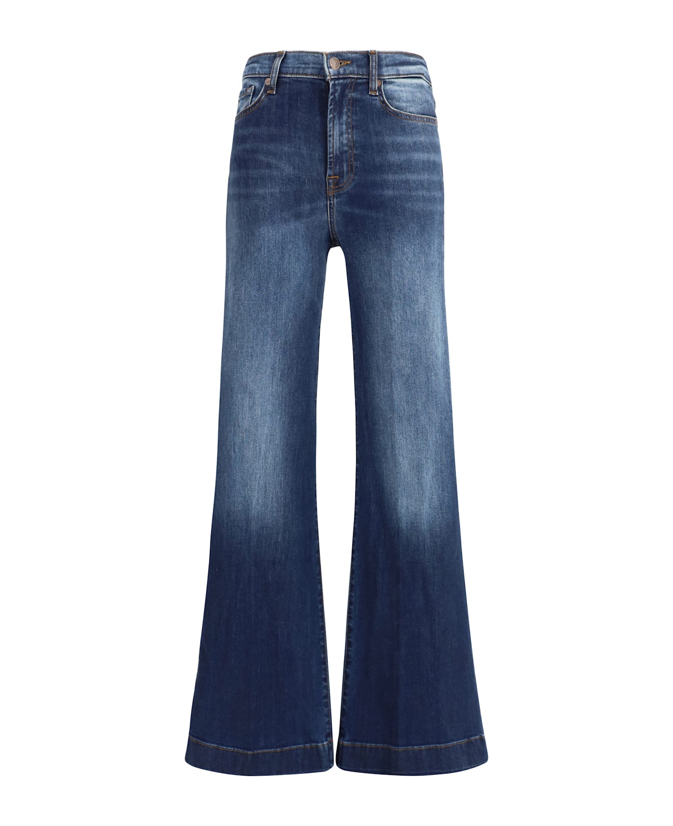 The gran canyon cotton jeans by 7for is a five-pocket flared style. it features a button-and-zip front closure and belt loops on the waistband. the brand's iconic signature leather patch, pressure-printed on the back, adds a distinctive and classy detail. with its classic silhouette and high waist, this garment is ideal for any occasion.