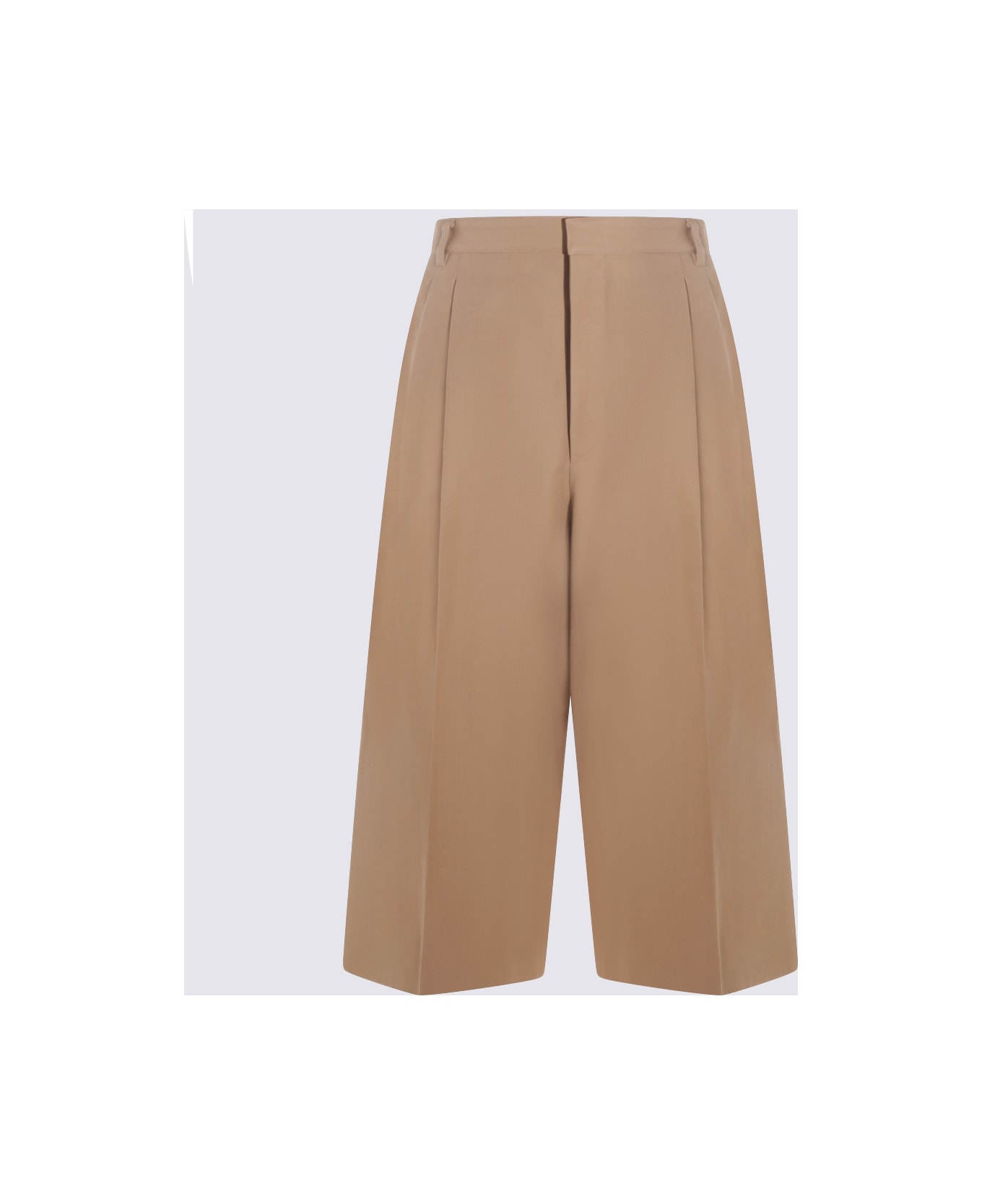 Beige wool and cotton blend pants from Celine featuring cropped length, wide leg, side pockets, zip closure fastening and high waist. Composition: _, 55% Wool, 45% Cotton