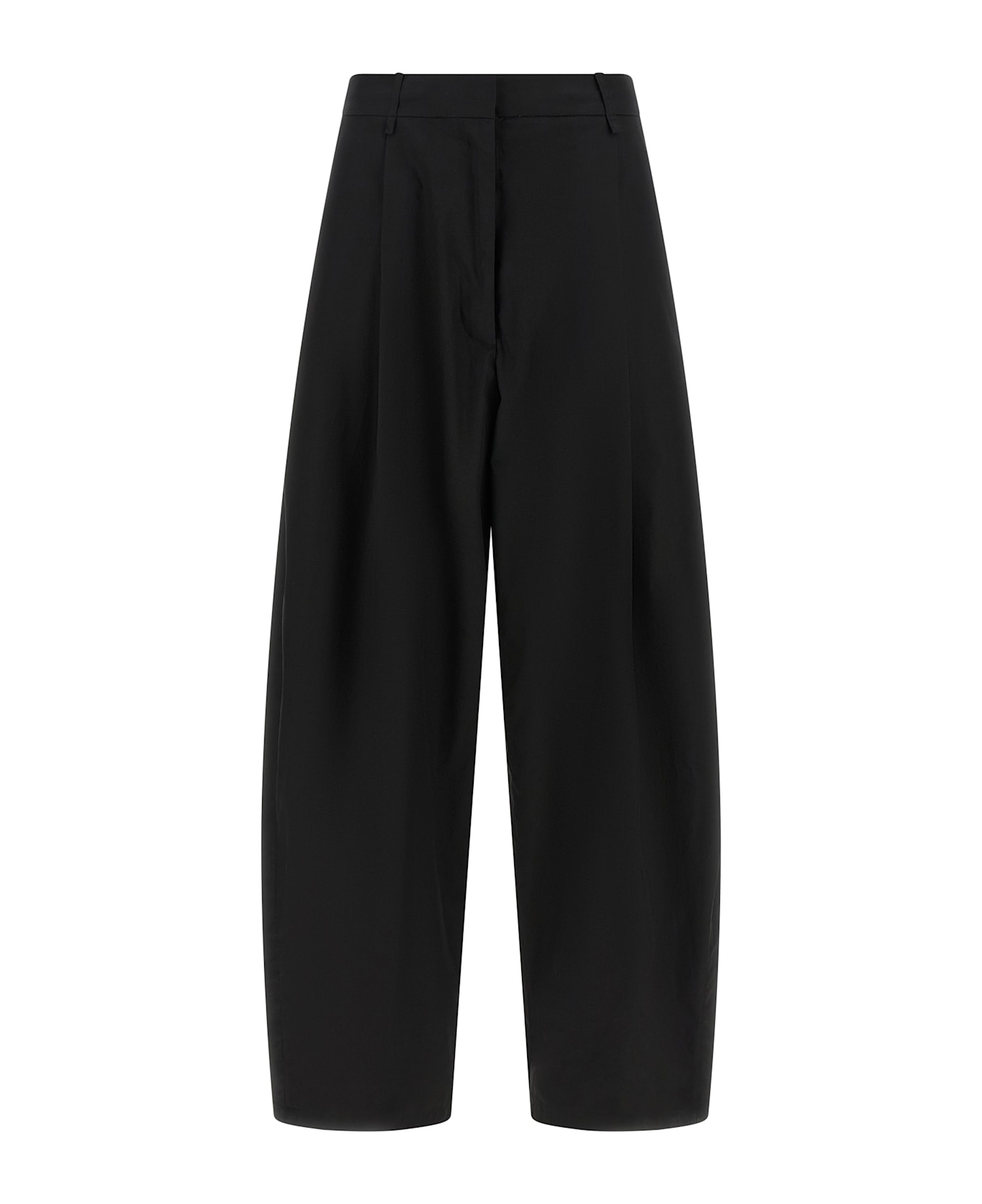 Cotton poplin pants, extra wide and curved leg, pins, hook and front button zip closure, front American pockets, back welt pockets. Composition: 100% cotton
