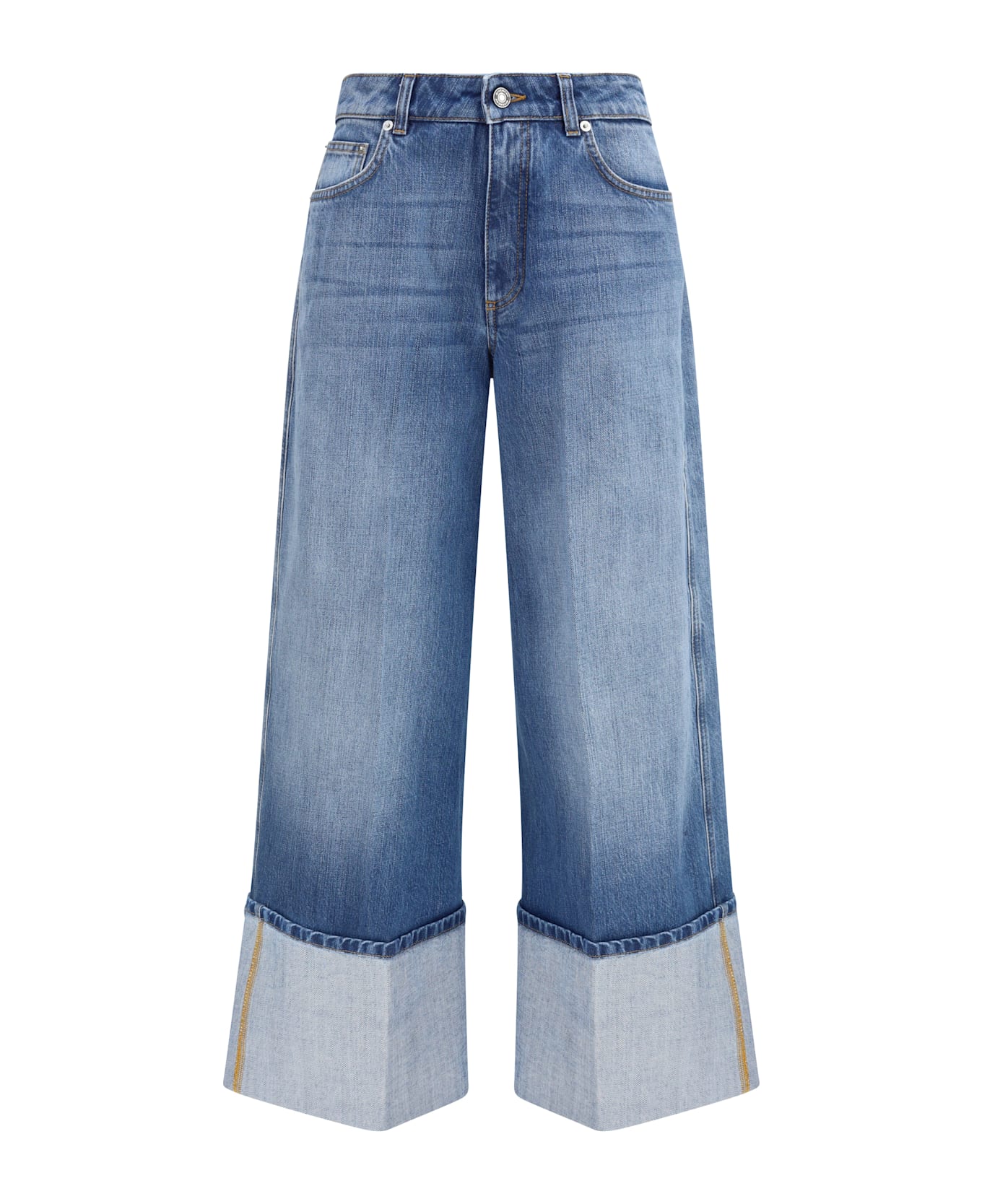 The dégradé turn-up jeans by givenchy feature belt loops, zip and button closure with engraved givenchy buttons, and a suede givenchy patch on the back. they have three front pockets, two back pockets, stitched turn-up hems, and a wide-leg silhouette, combining modern style with refined details.