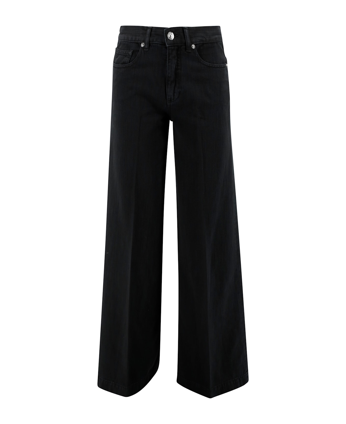 5-pocket jeans in cotton bull, regular waist, soft palazzo leg. Zip and button fastening.
