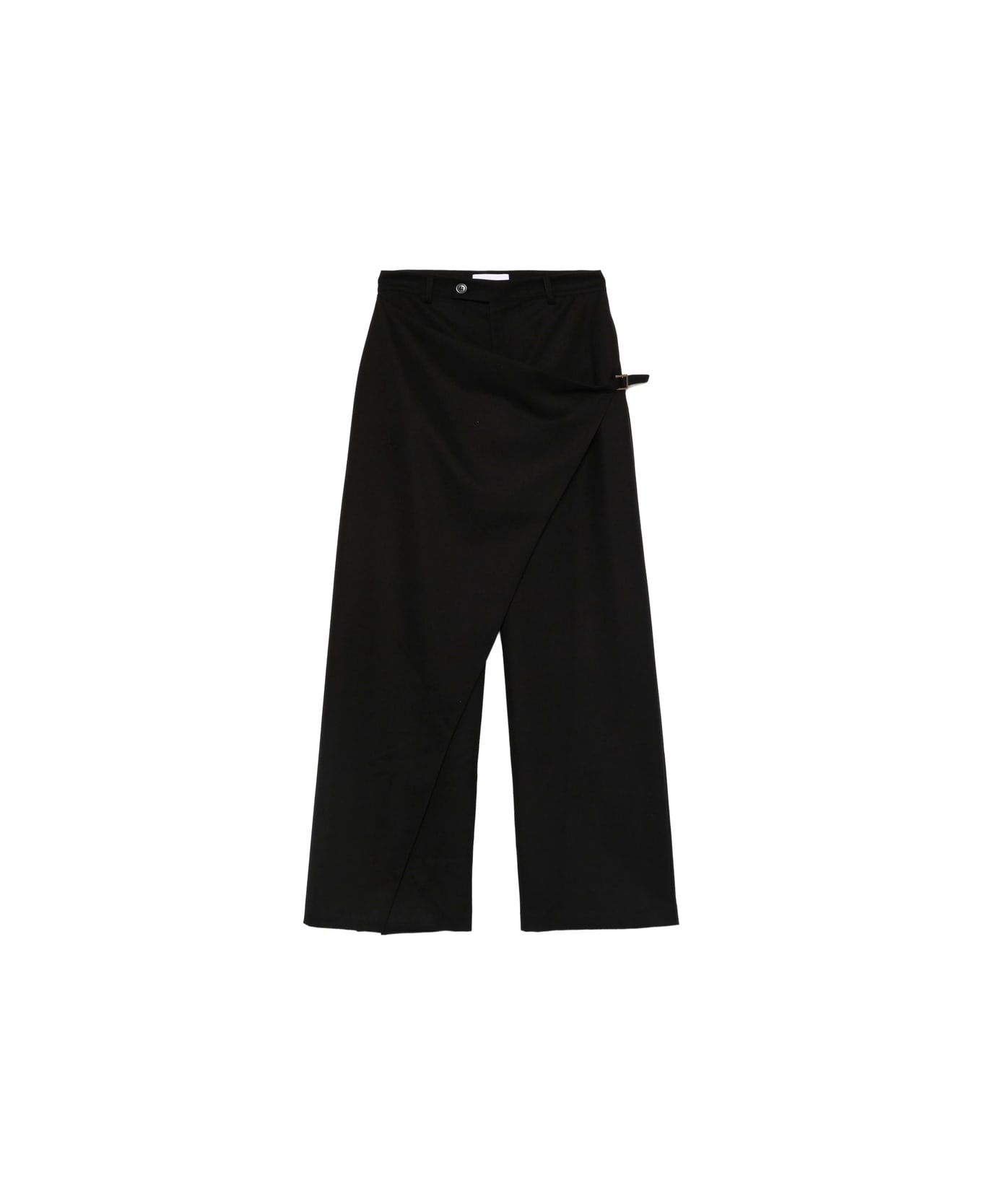 black wrap effect button fastening belt loops rear buttoned pockets two side inset pockets