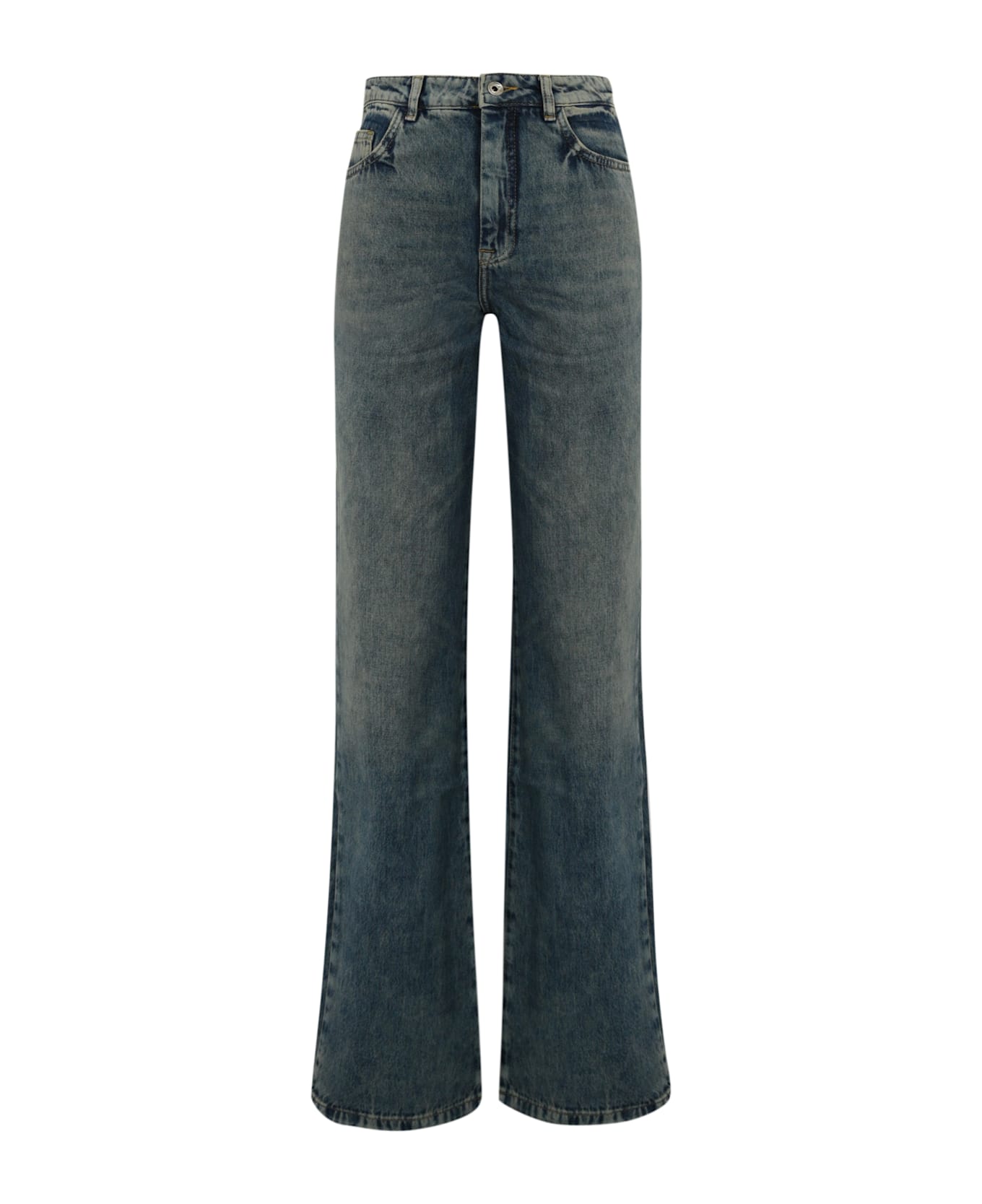 high-waisted denim trousers: cotton denim canvas high waist belt loops five pockets zip and button closure straight line sotne wash with lightening regular fit composition: 100% cotton lining: 65% polyester, 35% cotton