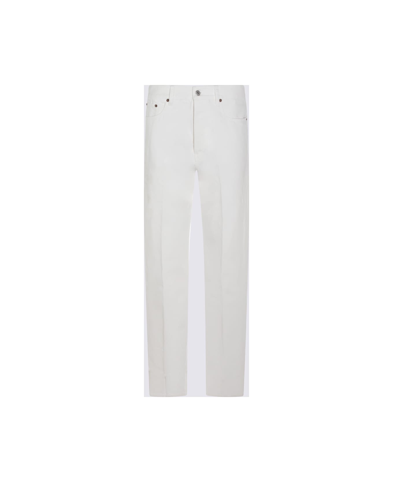 White heavy stone washed denim jeans from Celine featuring straight leg, classic five pockets, belted waist, zip closure fastening and regular fit. Composition: _, 100% Cotton