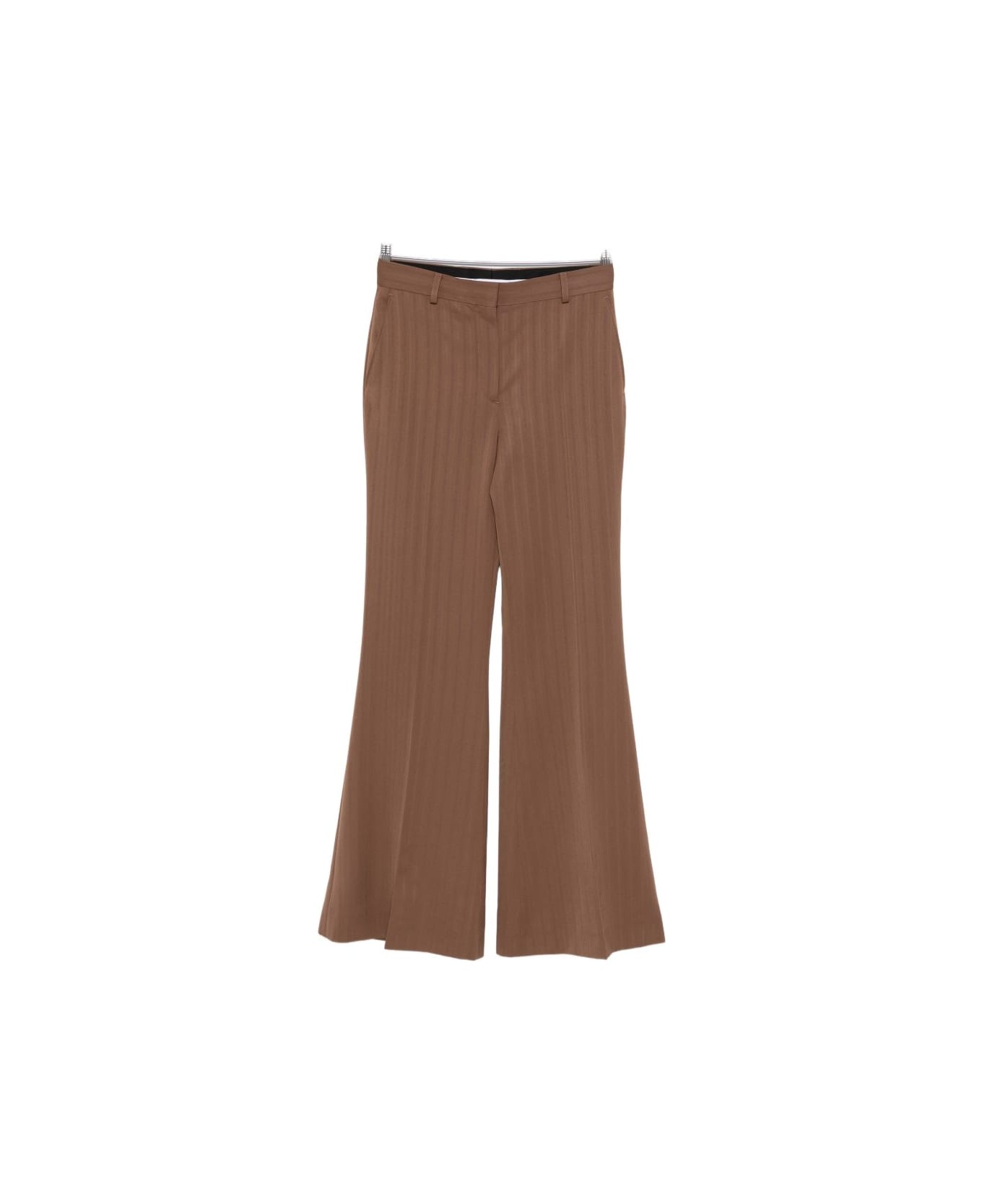 brown stripe concealed fastening belt loops welt pocket pressed crease