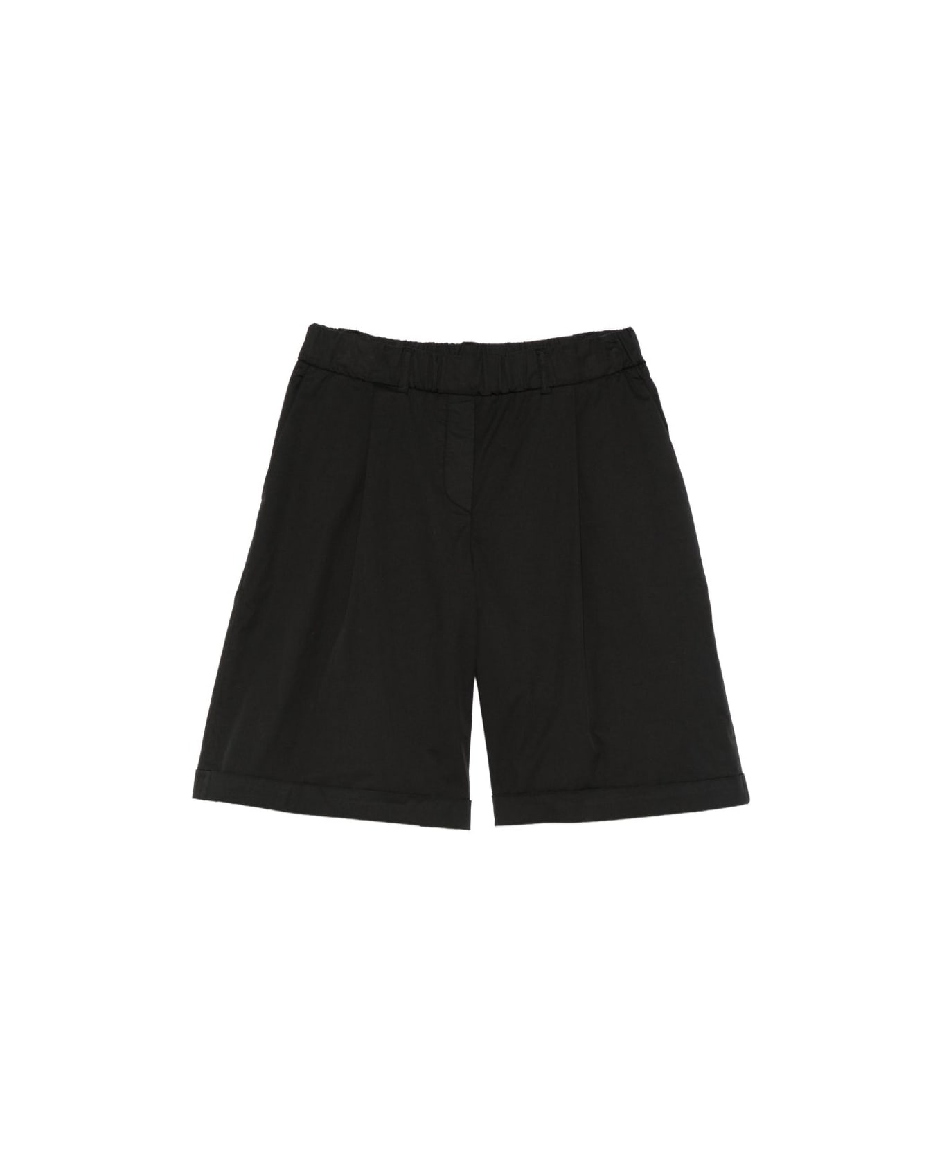 black elasticated waistband turn-up hem pleated front