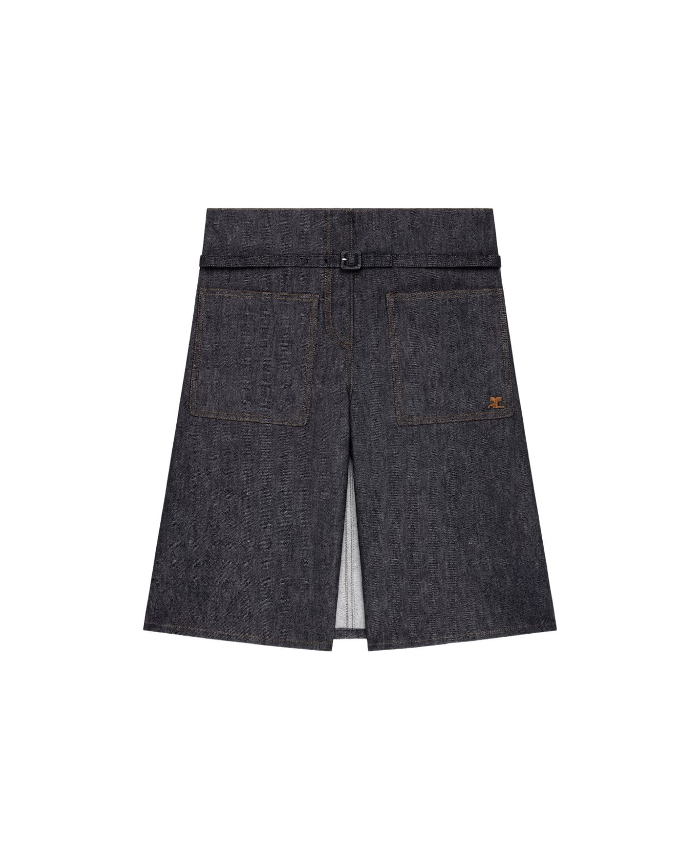 blue belted waist back pockets seam details