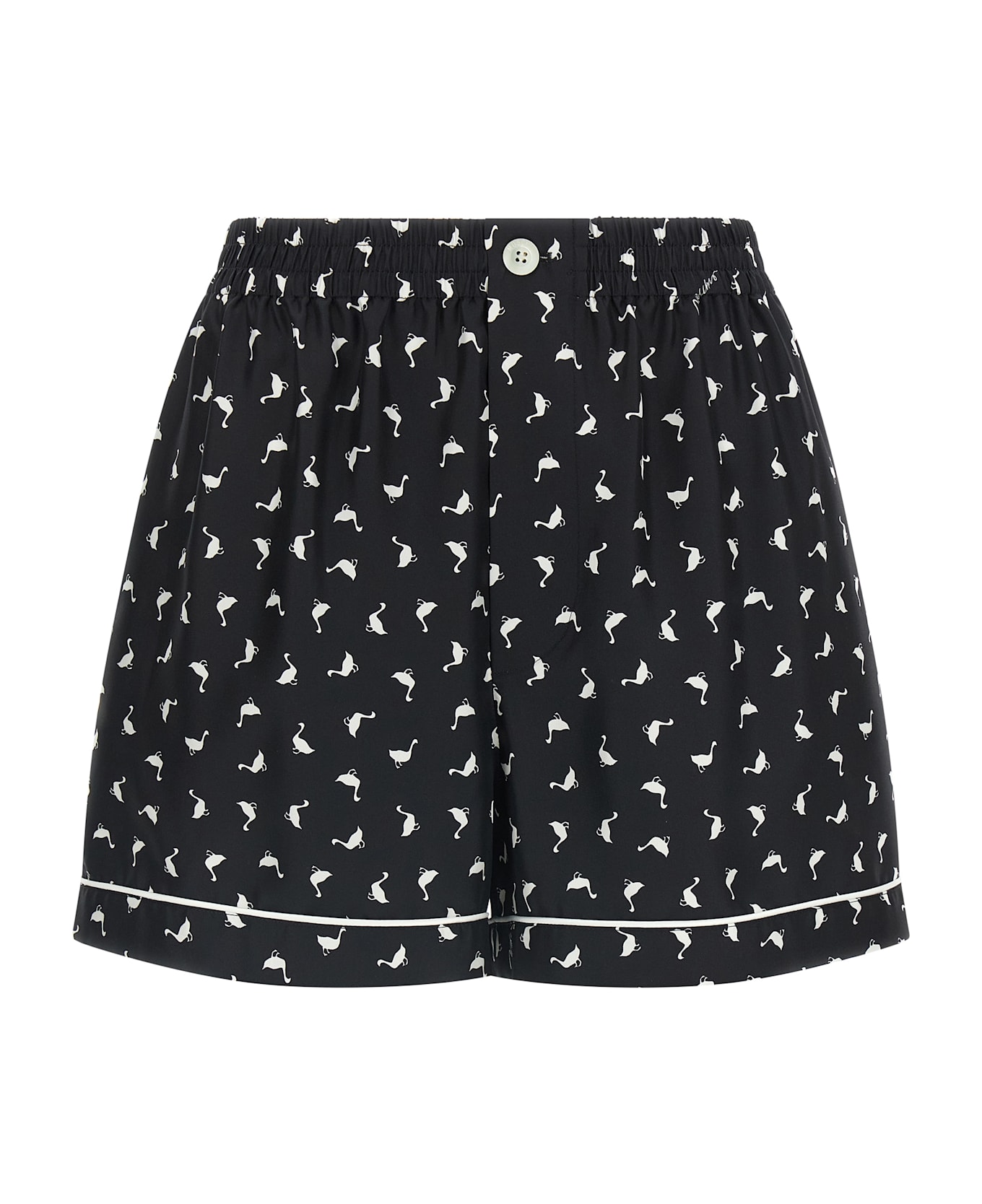 Silk twill shorts with all-over 'Oche' print, elastic waistband with button, trompe l'oeil flap, pockets. Composition: 100% silk