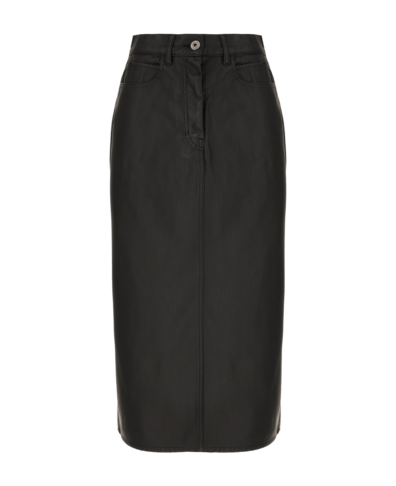 Midi-length skirt realized in polyester. -Belt loops at the waist -Concealed zip with a visible button closure -Five classic pockets -Lined