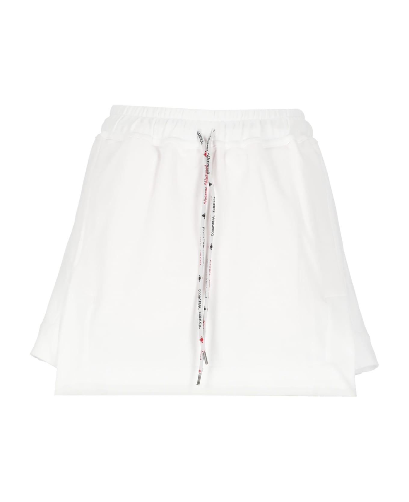 - White Vivienne Westwood cotton skirt for women - Elastic waist with drawstring - Two slit side pockets - One rear pocket with embroidered Orb Composition: 100% Cotton