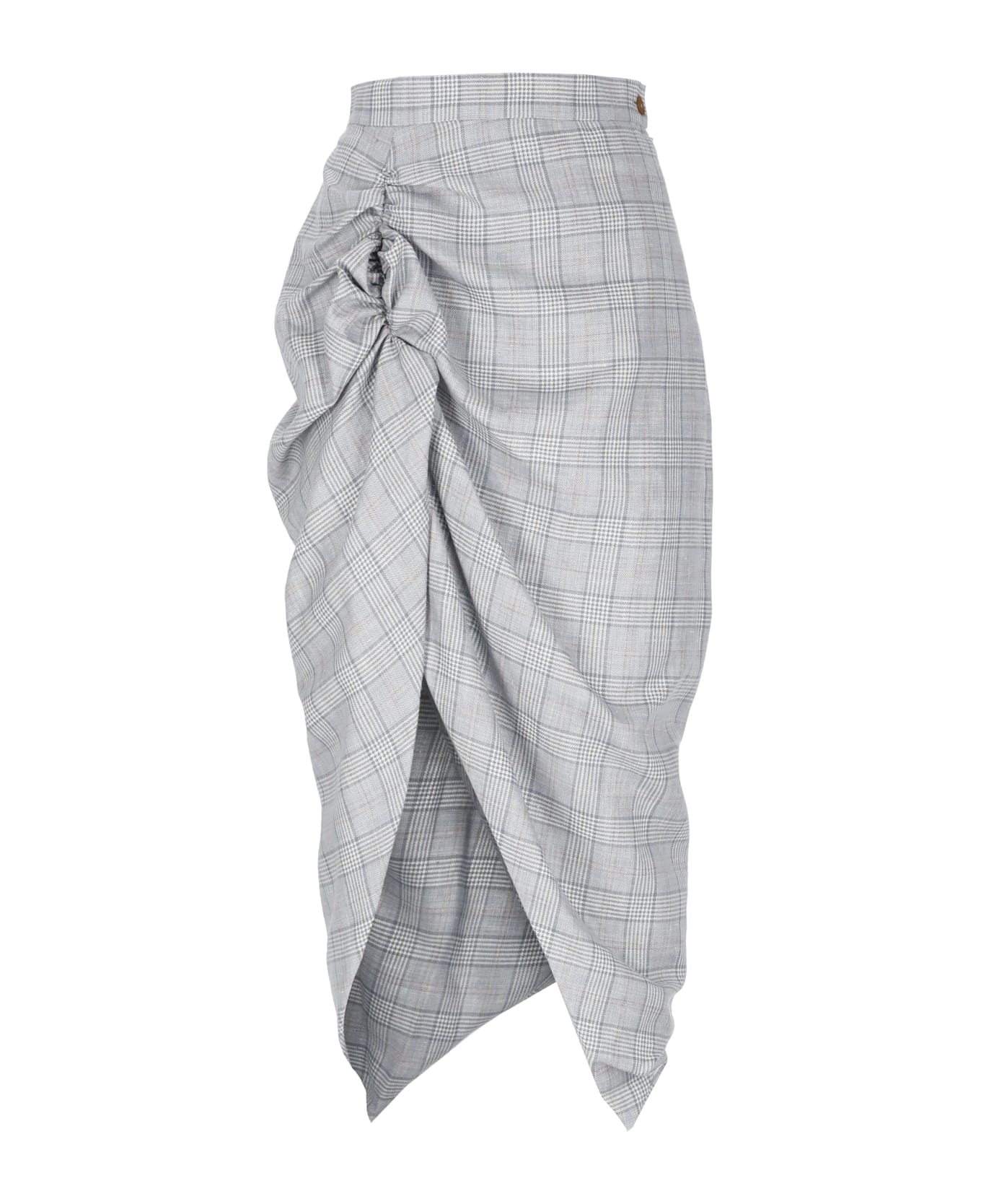 - Multicolor Vivienne Westwood wool and linen skirt for woman - Side zip and buttonfastening - All-over Prince of Wales pattern - Side braided pattern - Side vent at hem Composition: 50% Wool, 50% Linen Lining:, 95% Polyester, 5% Elastane