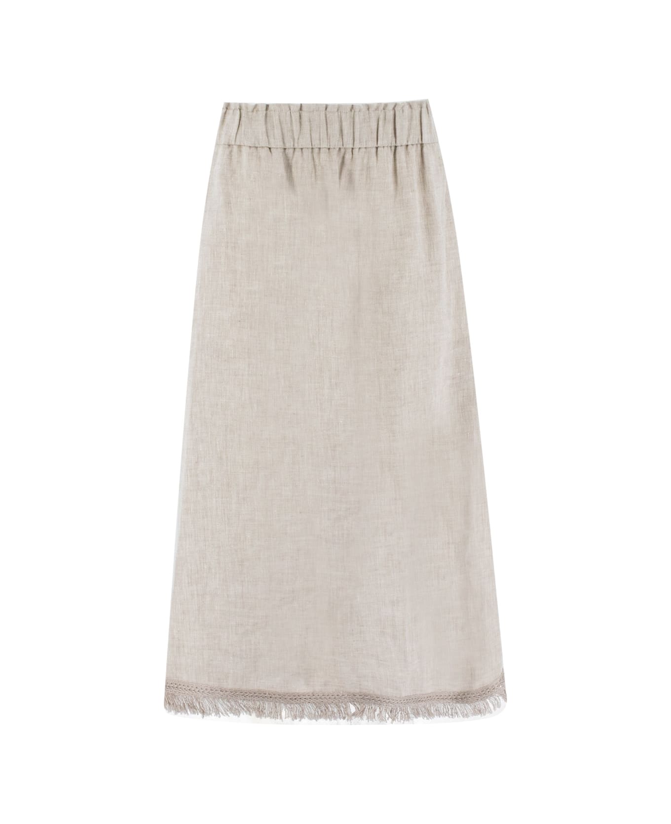 Long linen skirt with elasticated waist and fringes on the bottom.