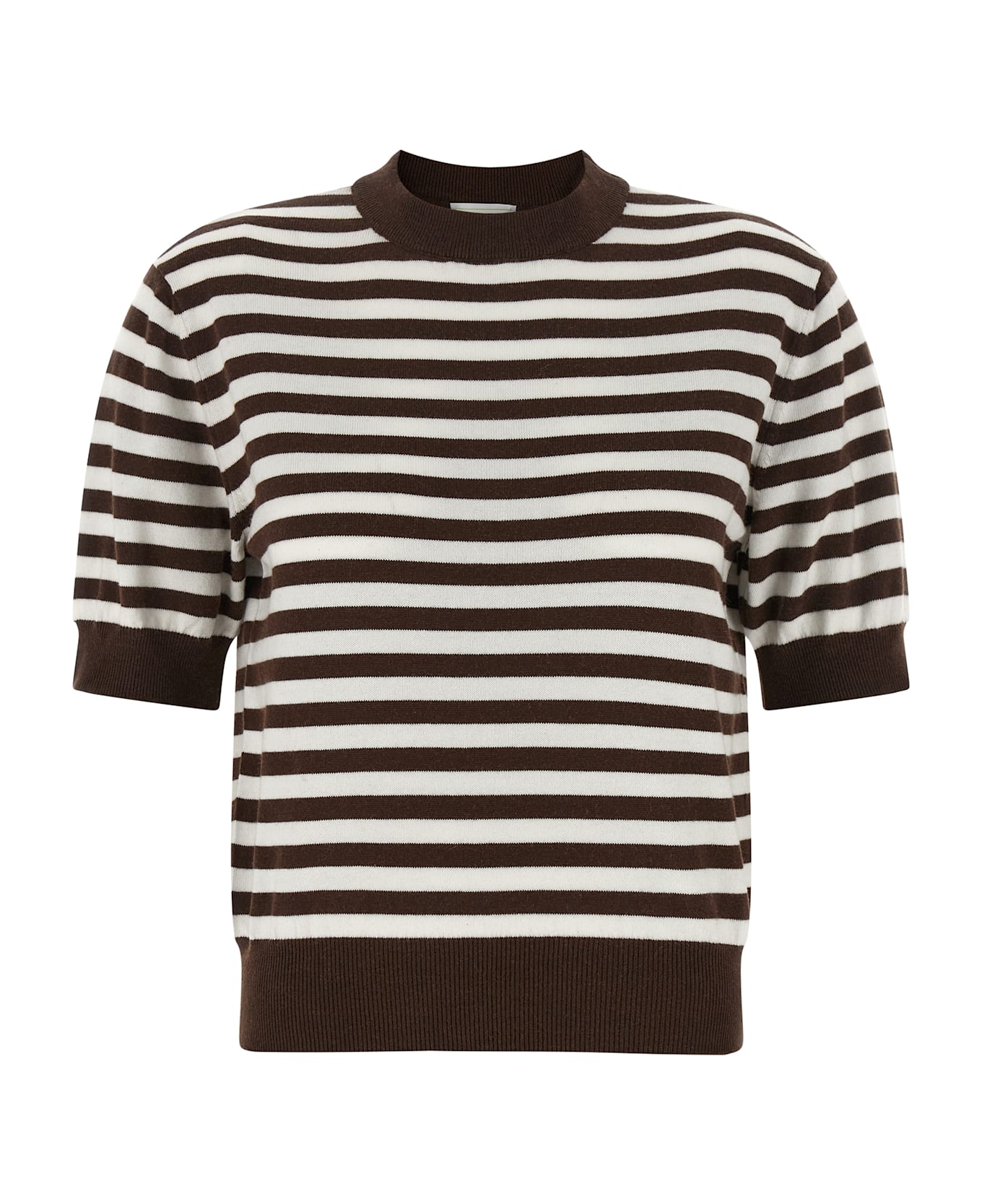 'Be Motivated' striped cotton and cashmere blend sweater, with crewneck, short cuffed sleeves, and band on the hem.