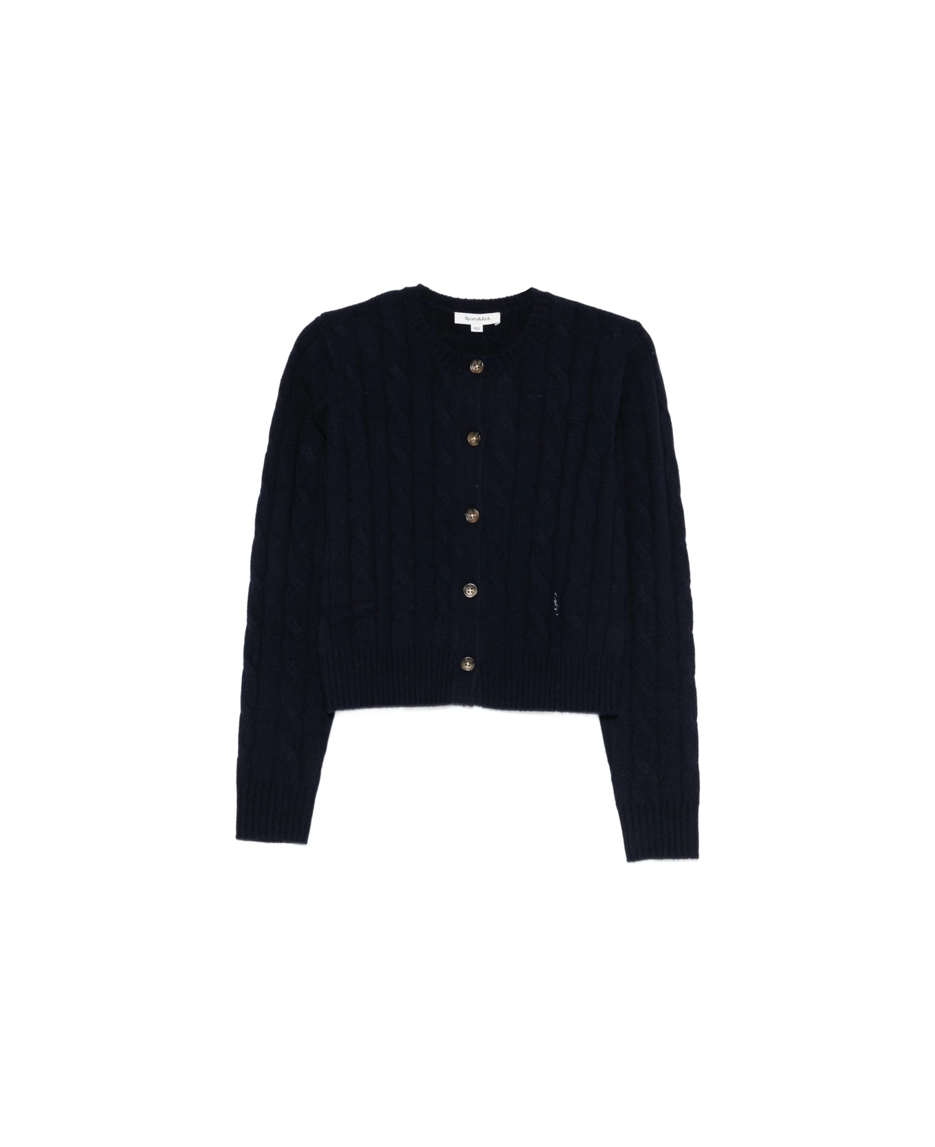 navy blue cable-knit button-fastening long-sleeves logo-embroidered round-neck