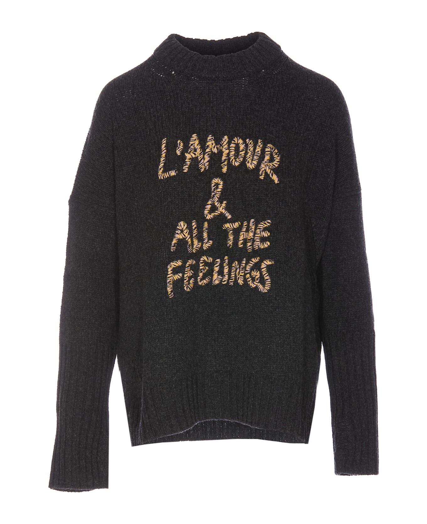 Zadig&Voltaire anthracite sweater, high neck, long sleeves, frontal embroidered write