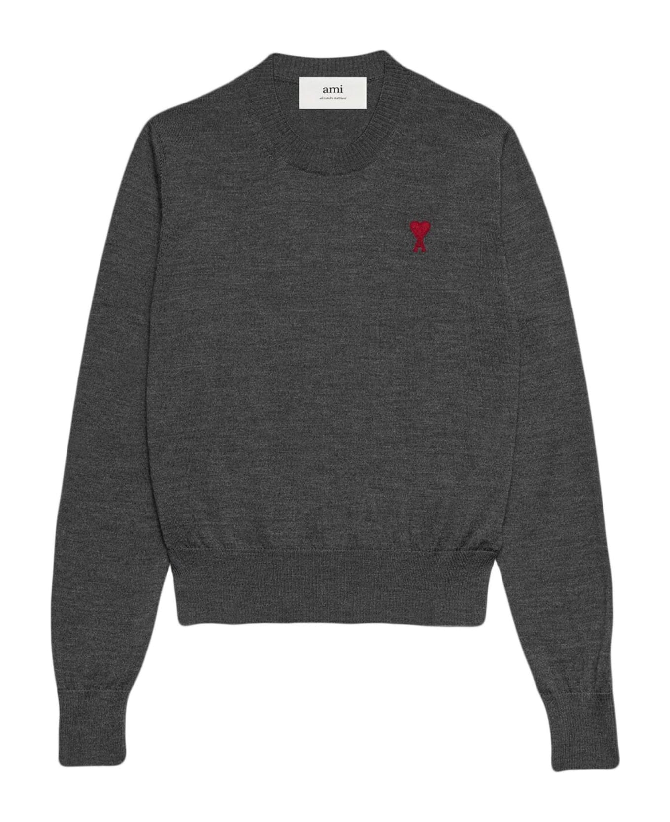 Dark grey RWS wool jumper, signature Ami de Coeur monogram motif, crew neck, long sleeves, ribbed hem Composition: Rws Wool, 100%