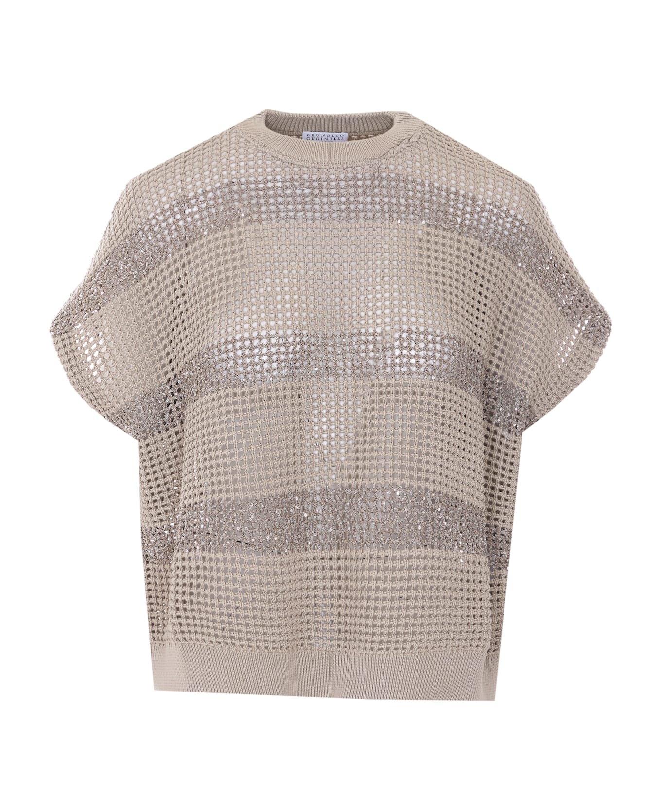 Brunello Cucinelli beige sweater, crewneck, all over sequins details Composition: 100% Cotton, 100% Polyester, 55% Polyamide, 45% Polyester