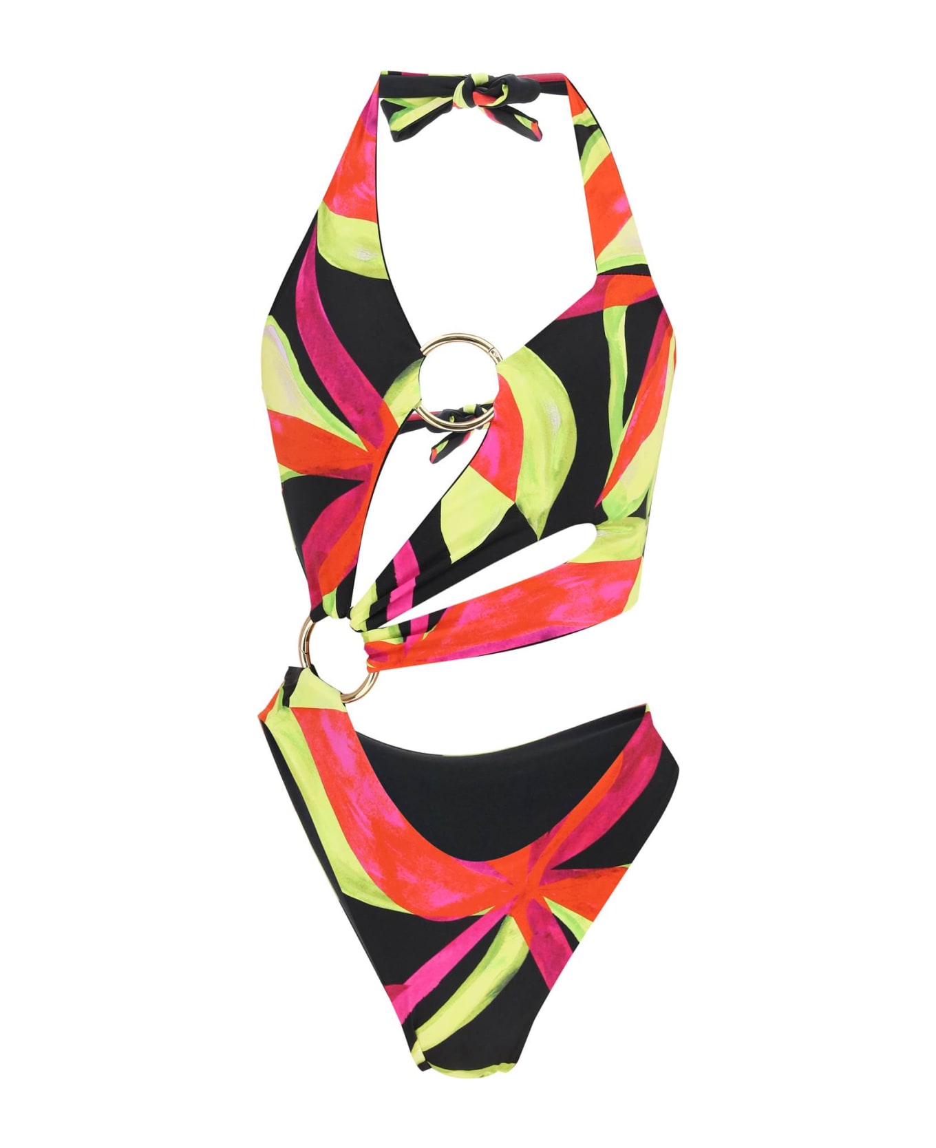One-piece swimsuit by Louisa Ballou with an asymmetrical shape and large gold-tone O-ring fastening. Wide straps and very high-rise cut. Lined interior. The model is 177 cm tall and wears size XS.