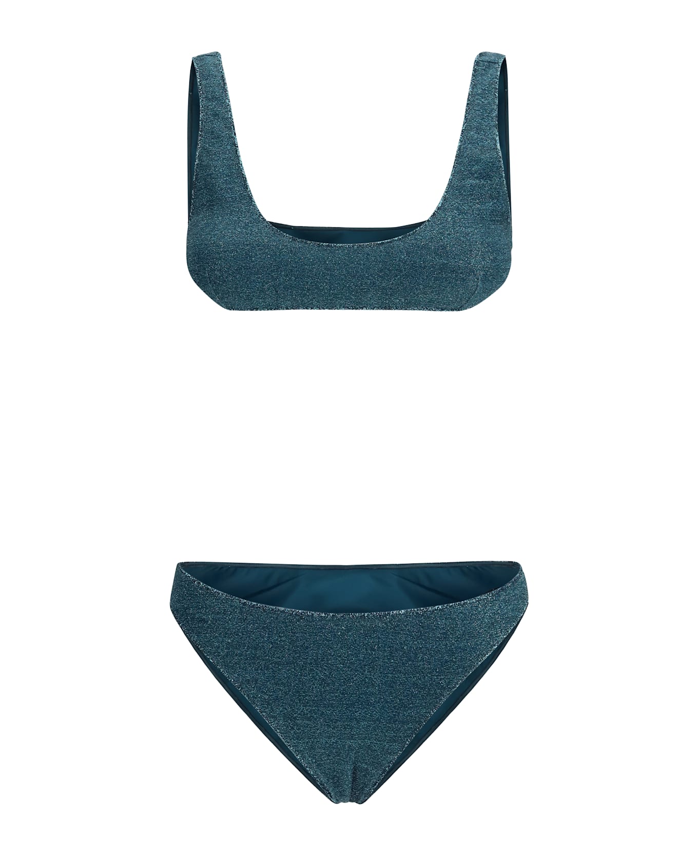 The lumiere sporty swimsuit by oséree is a perfect choice for those seeking a balance between sporty style and a touch of glamour. the bandeau top offers secure support thanks to the removable shoulder straps, combining functionality and comfort. the sporty design is emphasized by the simple and chic structure, while the all-over glitter pattern adds a subtle and sophisticated shine, catching the light in an elegant way. this swimsuit is ideal for those who want a dynamic and modern look, without sacrificing a touch of luxury, perfect for the pool or the beach, but also for those looking for a holiday outfit that does not go unnoticed.