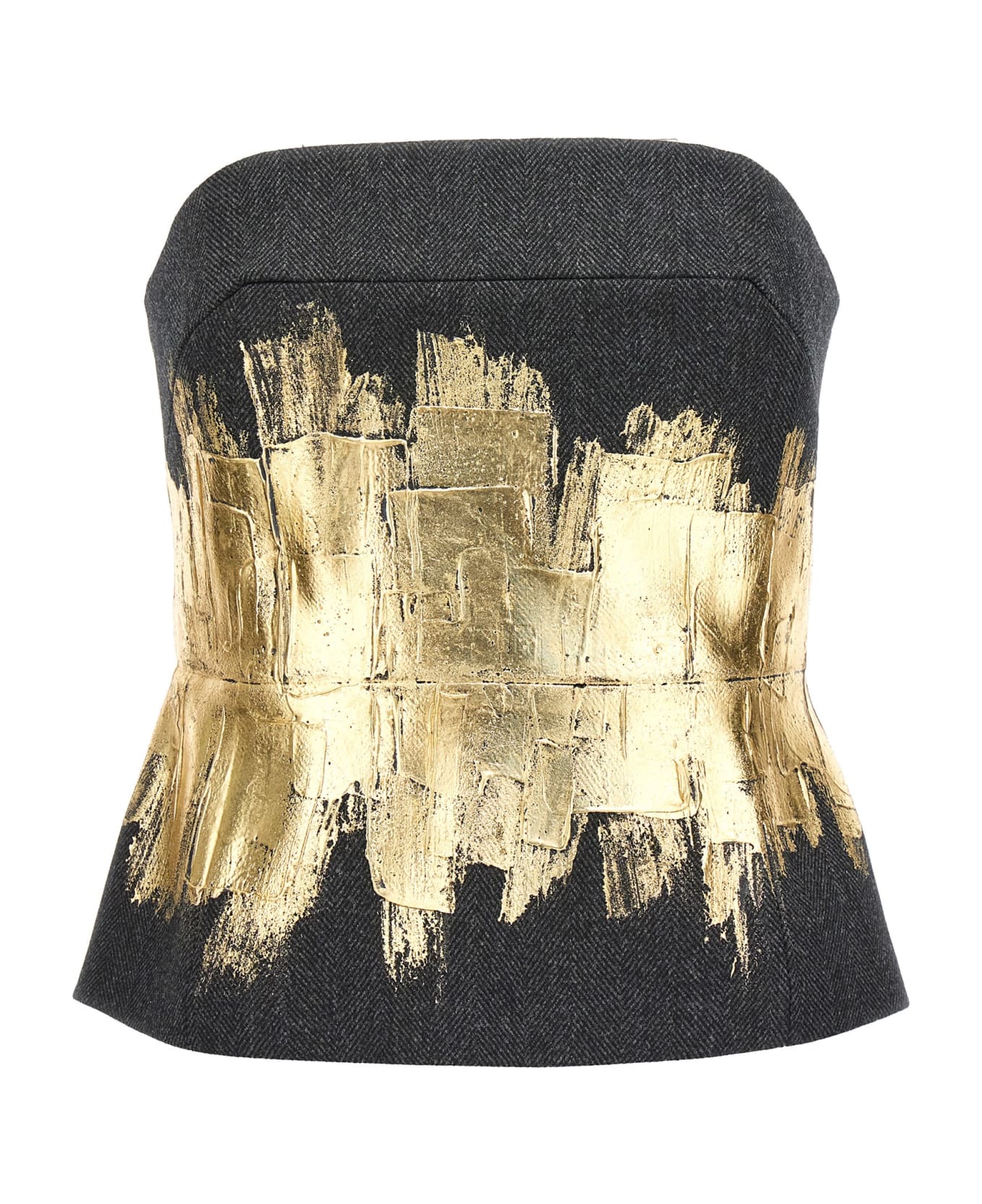 'Ciao' off-the-shoulder wool top with print, back zip closure.